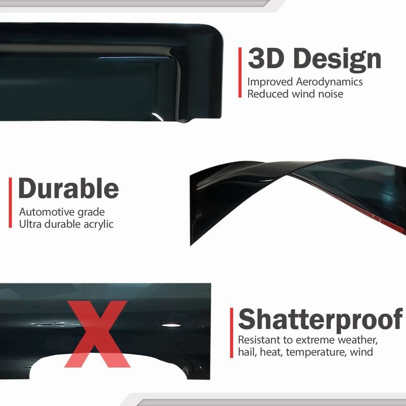 Vehicle specific window rain guards: the outside mount side window deflector is compatible with . Its 3D curved design perfectly matches the window contours offering a sleek OEM look.