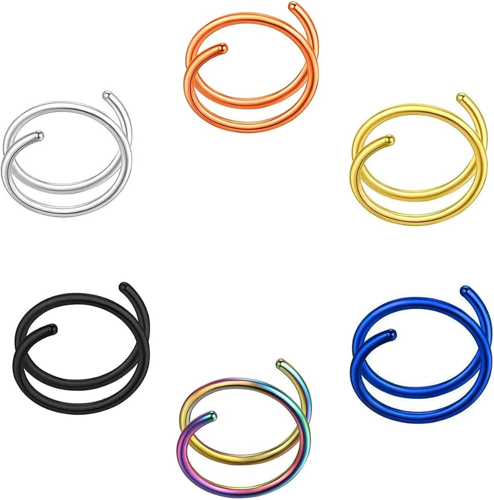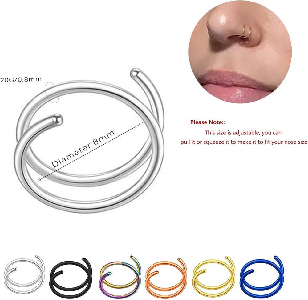 20 جرام حلقة أنف مزدوجة لثقب الأنف الفردي، حلقة أنف حلزونية ملتوية للنساء والفتيات والرجال، لا تسبب الحساسية من الفولاذ المقاوم للصدأ 8 مم، مجوهرات ثقب الأنف متعددة الألوان