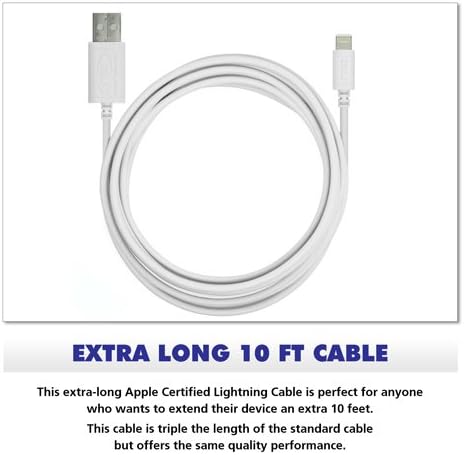 • LIGHTNING CABLE - LENGTH: 10 Feet, 3 Meters. COLOR: White.