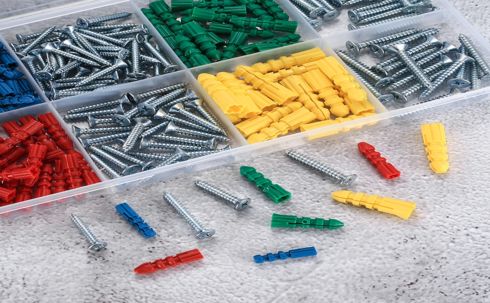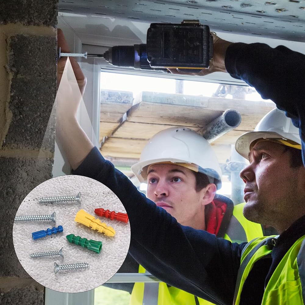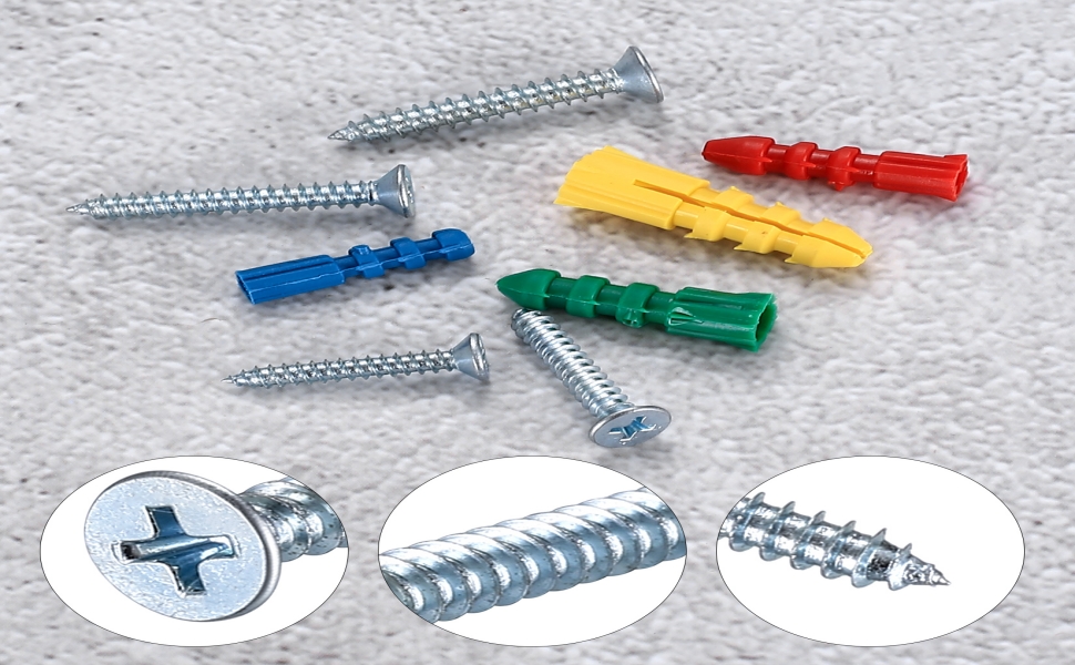مثبتات الحائط: مثبتات الحوائط الجافة مصنوعة من مادة بلاستيكية عالية الجودة، والتي ليس من السهل كسرها ومتينة. يمكن للأضلاع الموجودة على جانبي المراسي الخرسانية المضلعة أن تثبت المرساة بإحكام في الحائط عندما يتم تثبيت البراغي، مما يوفر قوة تثبيت موثوقة ويضمن أن مجموعة مثبتات الحائط الجافة والمسامير هذه لن تنفصل بسهولة أو تبلى بسبب وزن ثقيل.