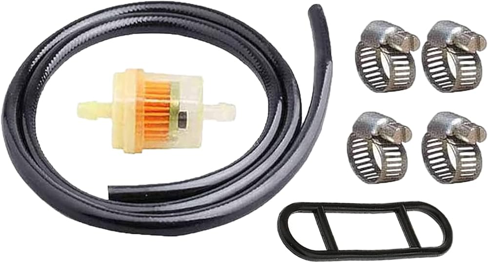 5️⃣ Package includes 1 x fuel valve, 1 x 60CM Fuel line, 1 x fuel filter, 4 x Clamp .