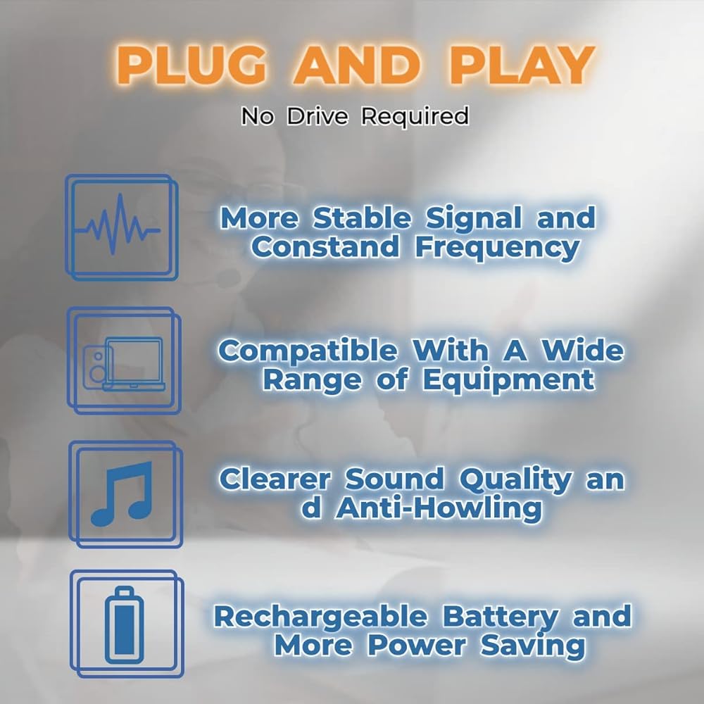 توصيل وتشغيل الميكروفون: لا حاجة إلى الاقتران. ★ متوافق مع الكمبيوتر الشخصي واللاب توب وماك وخلاط الصوت ومكبر الصوت وآلة الغناء ومضخم الصوت ونظام بي ايه ومضخم الصوت ونظام مكبر الصوت الناقل وما إلى ذلك. لا يدعم: ايفون/اندرويد/مكبر صوت بلوتوث