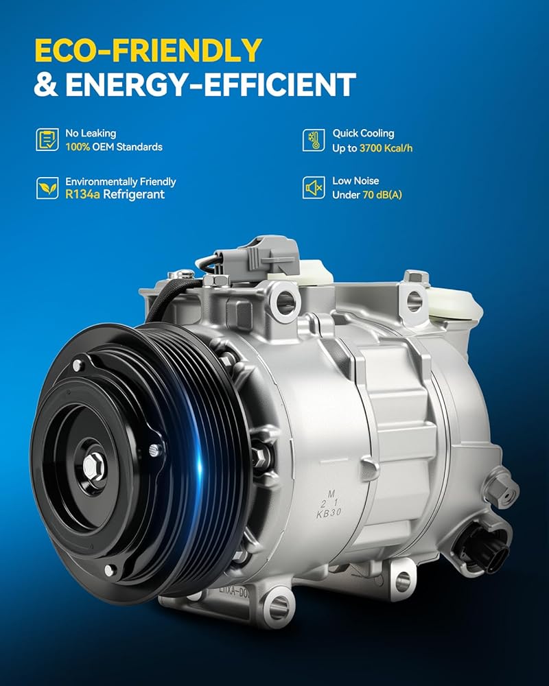 جودة فائقة: يوفر ضاغط تكييف الهواء للسيارات ضغطًا كافيًا، مما يزيد من الطاقة ويقلل من حمل المحرك. ويتميز بالكفاءة العالية والاستقرار والسلامة والموثوقية. جسمها الرئيسي مصنوع من مادة الألومنيوم عالية القوة، وهي متينة وقوية ومقاومة للتآكل. لن يتشقق ضاغط التيار المتردد أو ينكسر أو يتسرب.