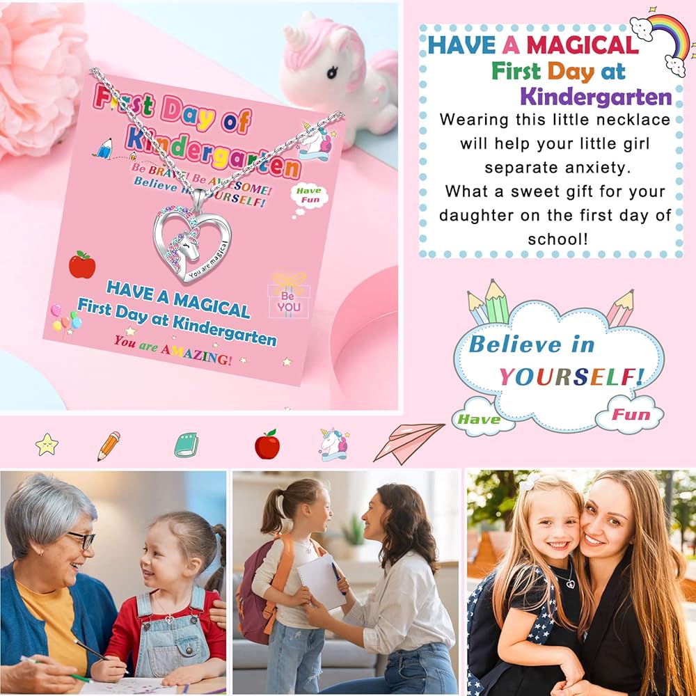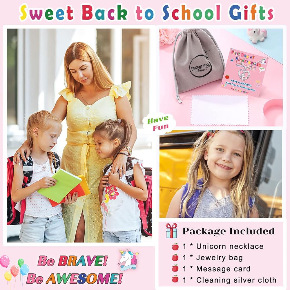 【قلادة العودة إلى المدرسة】 عندما يصل اليوم الأول من المدرسة، سيكون هناك القليل من القلق لفتياتك. ما عليك سوى مشاركة قلادة وحيد القرن اللطيفة هذه مع فتياتك وأخبرها أن "قلبي سيكون معك دائمًا أثناء التعلم واللعب في المدرسة". أتمنى أن تجلب هذه القلادة السحرية الحظ السعيد لفتياتك وتحقق أمنيات وأحلام فتياتك!