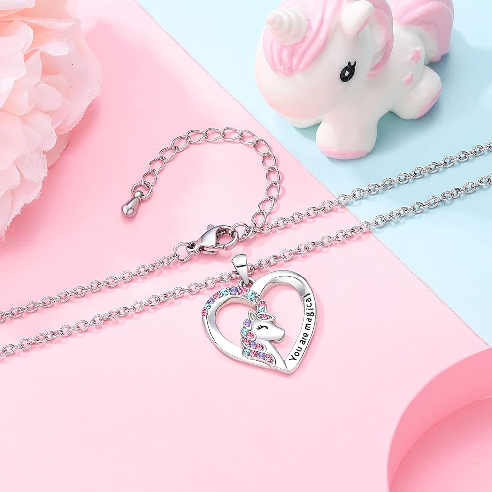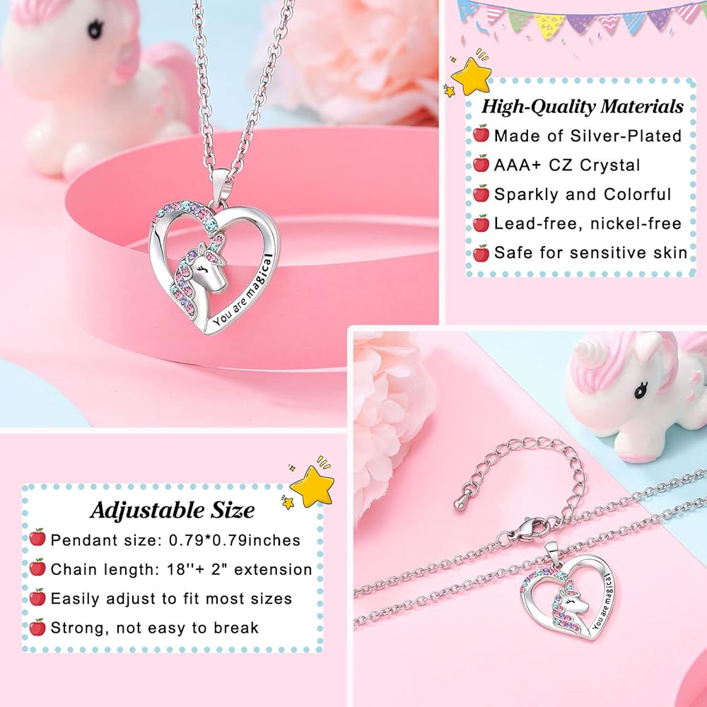【قلادة وحيد القرن للفتيات】 وحيد القرن هو رمز سحري في قلب كل فتاة. امنح فتاتك هذه القلادة لتذكيرها بأنها لطيفة وشجاعة وسعيدة وصحية ونقية. طريقة رائعة للتعبير عن حبك لفتاتك، وإخبارها أنك ساحر وأكثر شجاعة وأقوى.