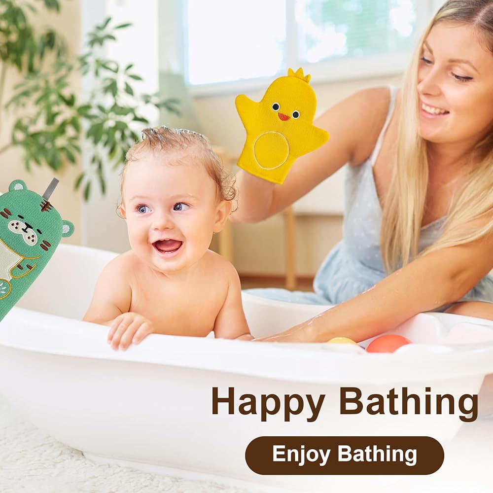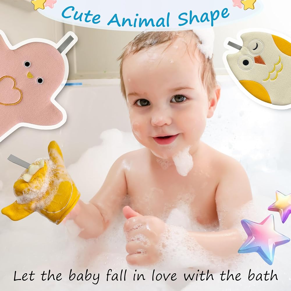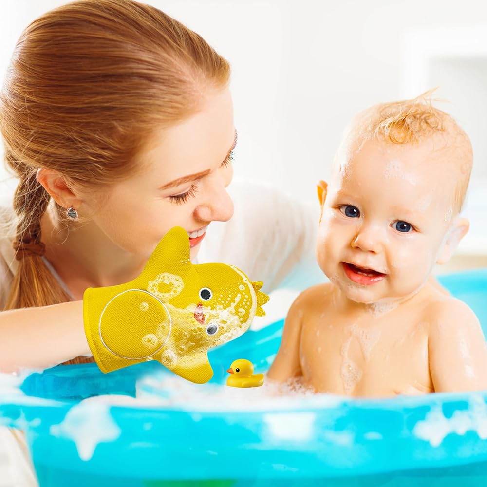 【Suitable Size】: The kids washcloth for bath measures about 8*5 inches and fits most moms' hands, so it's convenient to help shower the baby, and even the kids can use it to take a bath themselves