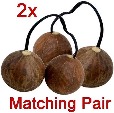The aslatua (ah-SLAH-too-uh) is a unique hand percussion shaker that will capture your attention with its tricky polyrhythm. These are the original, authentic aslatua made from Swawa seed pods in Ghana. We have matched these aslatua into set pairs based on pod size and string length, which allows you to play with one in each hand at the same time. If the aslatua are not correctly matched they will move at different speeds in your hands, making it impossible to keep time or do tricks. If you intend to create polyrhythm by playing two simultaneously, then this matching pair is for you. Available in 4 sizes. How to measure your hand to find the right size: Be sure to select the right size for your hands! Measure hand width at the top of the palm at the knuckles; this size should correspond with the aslatua's string length. --- This simple instrument (also known as aslato, kashaka, cascas, televi, kasso-kassoni, and more) is played by holding one gourd in the palm while simultaneously shaking and swinging the second gourd. The seed pods come from the Swawa tree in West Africa, which are dried, hollowed, filled with pebbles, and connected with a string. You can enjoy hours of frustration and fun playing with this traditional African instrument, which is covered by our warranty, and features: * pair of aslatua, each one has two small, strong Swawa seed pods filled with tiny seeds and pebbles * strong connector rope, securely fastened to each gourd * multiple uses: conventional "egg" shaker; polyrhythmic percussion instrument using the swing, clack, and catch technique * great gift for any percussion enthusiast. Avialable from World Percussion USA in 4 sizes: Extra-large: 2.5" pods + 5” rope;Large: 2" pods + 4” rope; Medium: 1.75" pods + 3.5” rope; Small: 1.5" pods + 3” rope. NOTE: If there is writing on the instrument it is the name/signature of the cultural artisan who made it. Learn more at Africa Heartwood Project / drums.