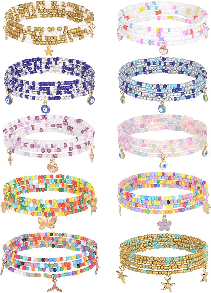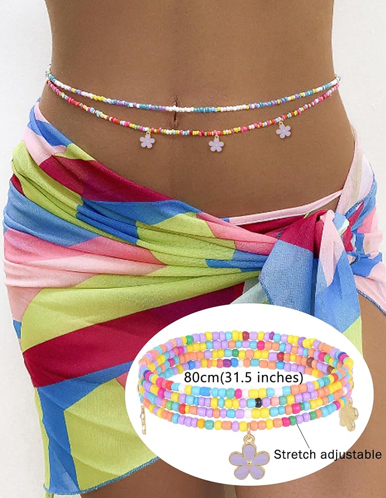 Akeoqi 10 قطع سلاسل خرز الخصر وسلاسل البطن الأفريقية بالإضافة إلى حجم ملون بوهو الزجاج حبة الجسم سلسلة الصيف بيكيني للشاطئ مجموعة مجوهرات مثيرة للنساء 31.5 بوصة