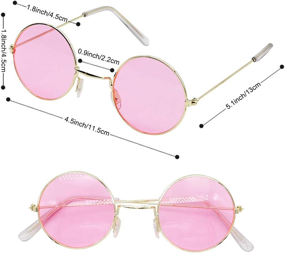 نظارات بنمط هيبي: عدسات النظارات الوردية القديمة تقريبًا. قطر 5 سم/ 1.97 بوصة، بمقاس عادي للبالغين، رائع ومريح في الارتداء، ظلال مستديرة بنمط هيبي من الستينيات والسبعينيات تحاكي اتجاه الوقت مما يجعلها إكسسوارًا رائعًا للأزياء التنكرية.