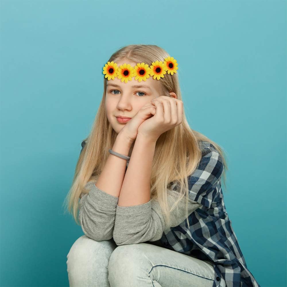 عصابة رأس على شكل تاج الزهور: عصابة الرأس الخاصة بنا مصنوعة من قماش متين، ويتم تجميع الزهور والأوراق بشكل أنيق على عصابة الرأس، نمط زهرة الأقحوان سيجعلك أكثر جاذبية؛ مع تصميم شريط قابل للتعديل، تناسب عصابات الرأس معظم رؤوس البالغين والأطفال ويمكن وضعها في العطلات وحفلات الزفاف والعديد من المناسبات المبهجة الأخرى.