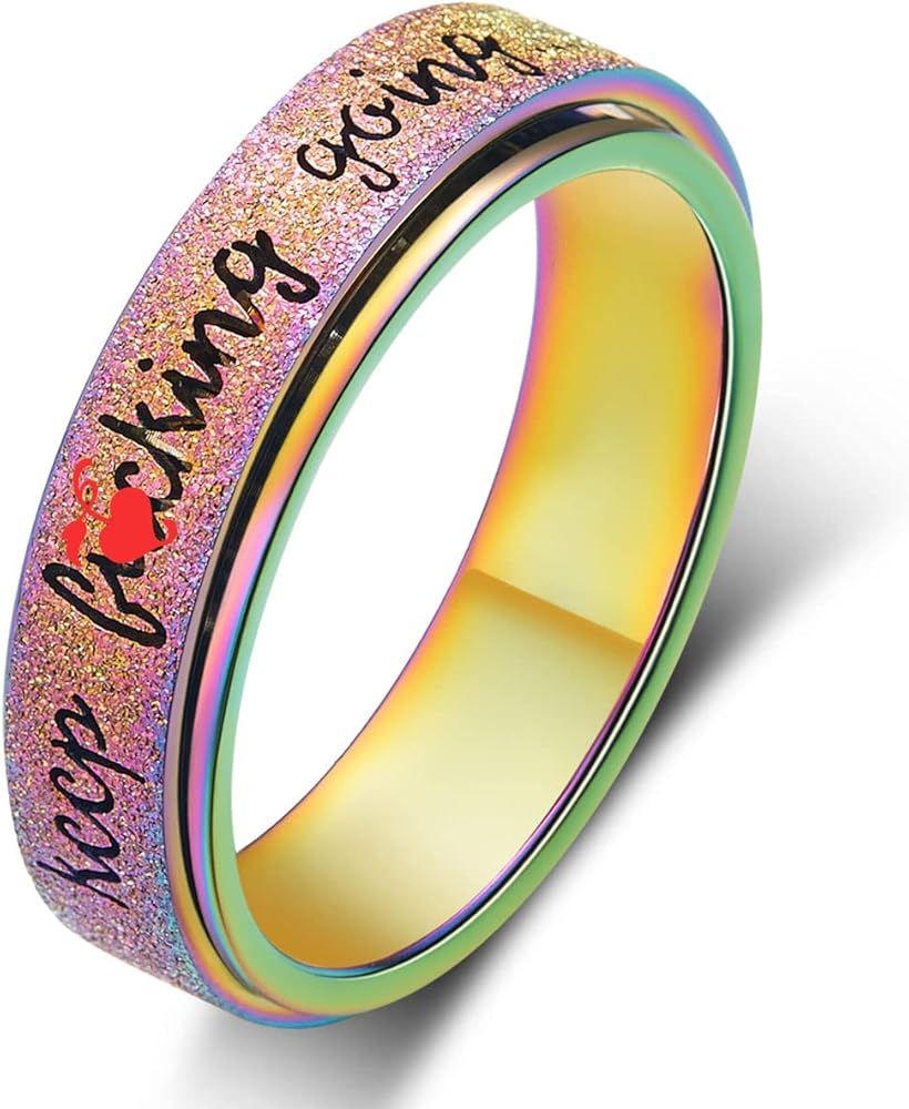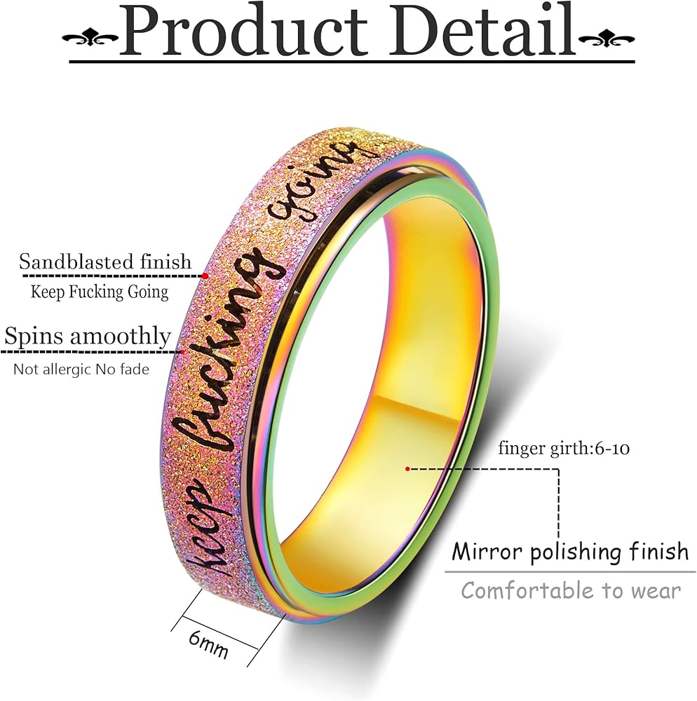 ✔ تصميم فريد: خاتم فيدجيت مع رسالة ملهمة "Keep f**king go"، ارتدي هذا الخاتم الدوار لتحفيزك أنت وأصدقائك على قضاء الأوقات الصعبة، وهو مفيد بشكل خاص في حالات اضطراب فرط الحركة ونقص الانتباه. فقط كن واثقًا وكن على طبيعتك، فأنت مكتفي ومحبوب.