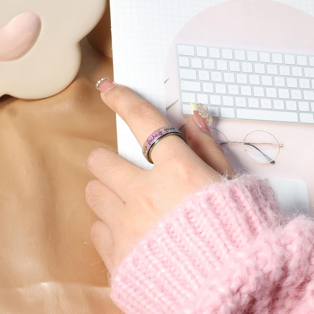 ✔ استمر في استخدام الحلقة الدوارة الملهمة: تم تصميم حلقة القلق هذه خصيصًا للأشخاص الذين يتململون باستمرار وغير واثقين، ويمكن تدوير الشريط المركزي يدويًا. إنه مسكن صغير ولكنه رائع للقلق، ويمكن أن يوفر لك التحرر من القلق وتخفيف التوتر.