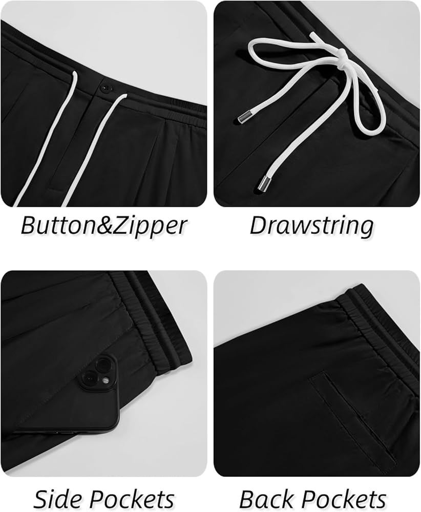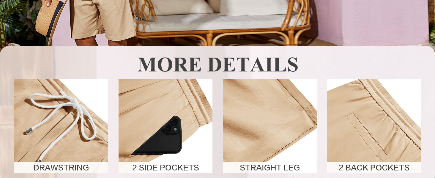 【التصميم: تتميز السراويل القصيرة الأمامية المسطحة للرجال بحزام خصر برباط، وخصر مرن، وملاءمة عادية، وساق مستقيمة، وجيبين جانبيين عميقين وجيبين خلفيين. هذه الجيوب مناسبة لتخزين المفاتيح والهواتف المحمولة والمحافظ والأدوات وغيرها من العناصر.