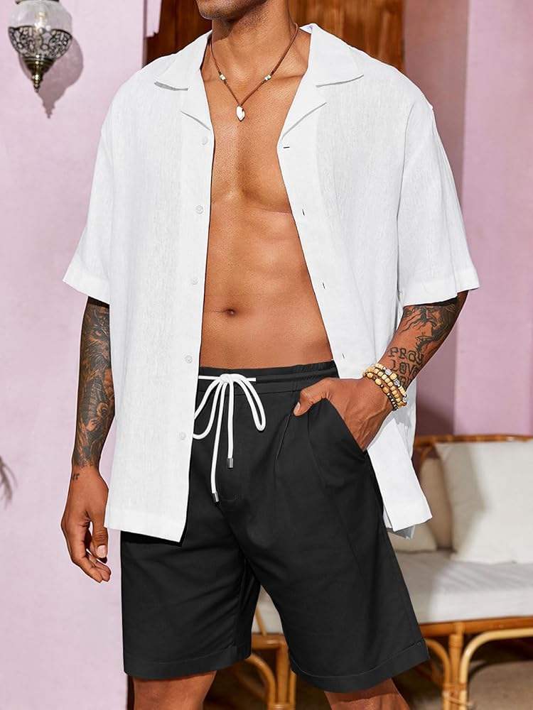 【نسيج فاخر】: شورت قطني كاجوال للرجال مصنوع من نسيج عالي الجودة من القطن بنسبة 100%، ويوفر ملمسًا ناعمًا وضيقًا حقًا. شورت الشاطئ الصيفي هذا جيد التهوية وخفيف الوزن، ولا يتجعد أو يتقشر بسهولة.