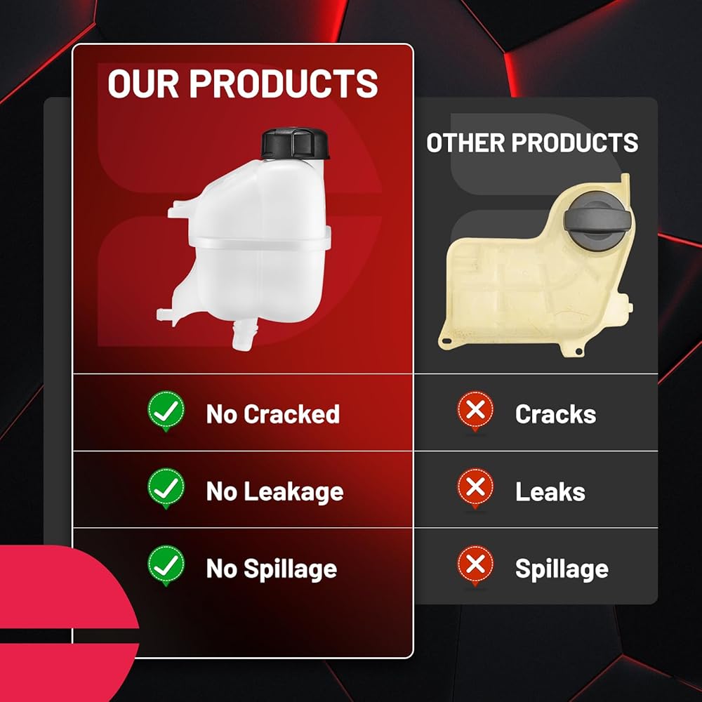【ميزات خزان التبريد】خزان تدفق سائل التبريد هذا مصنوع من مادة البولي بروبيلين عالية الجودة، مما يساعد على تقليل تخفيف الزيت واستهلاك الوقود ومنع تسرب الزيت وتقليل ضغط نظام تبريد السيارة. يمكنك رؤية مستوى مانع التجمد الداخلي مباشرة دون فتح غطاء الرادياتير لتجنب إتلاف الأجزاء.