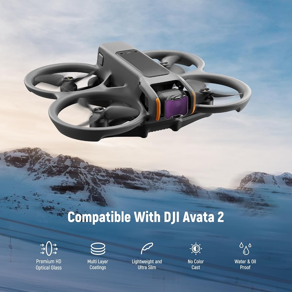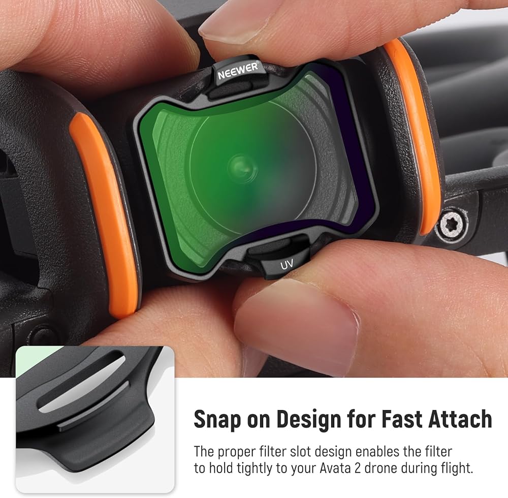 NEEWER Snap On ND&UV&CPL Filter Set compatible with DJI Avata 2 is a must have companion for enhancing your aerial shots. Crafted with high quality materials, these filters offer remarkable light control.