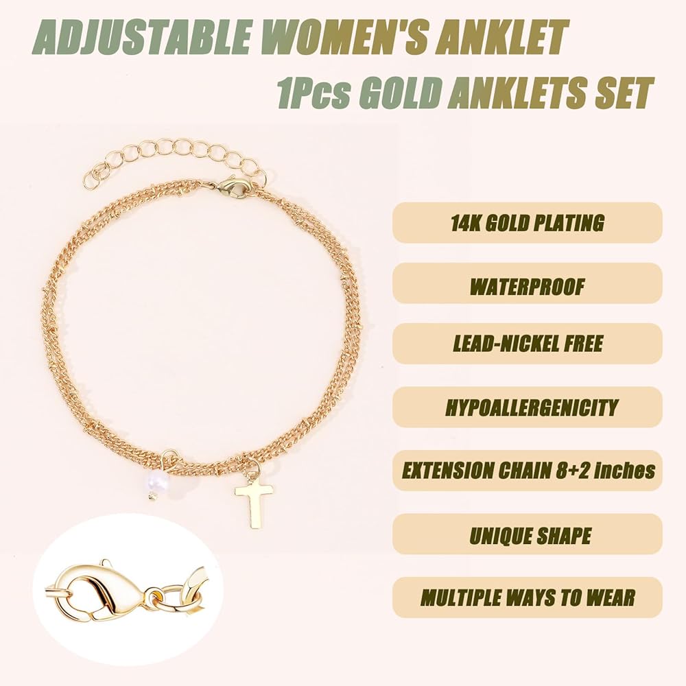 ❤ خلخال مطلي بالذهب عيار 14 قيراط: مطلي بالذهب عيار 14 قيراط على النحاس لضمان يدوم طويلاً، ومضاد للصدأ، وخالي من النيكل، وخالي من الرصاص ولا يسبب الحساسية، تصميم خلخال رقيق مع مشبك جراد البحر وسلسلة تمديد رقيقة، سهل الارتداء.