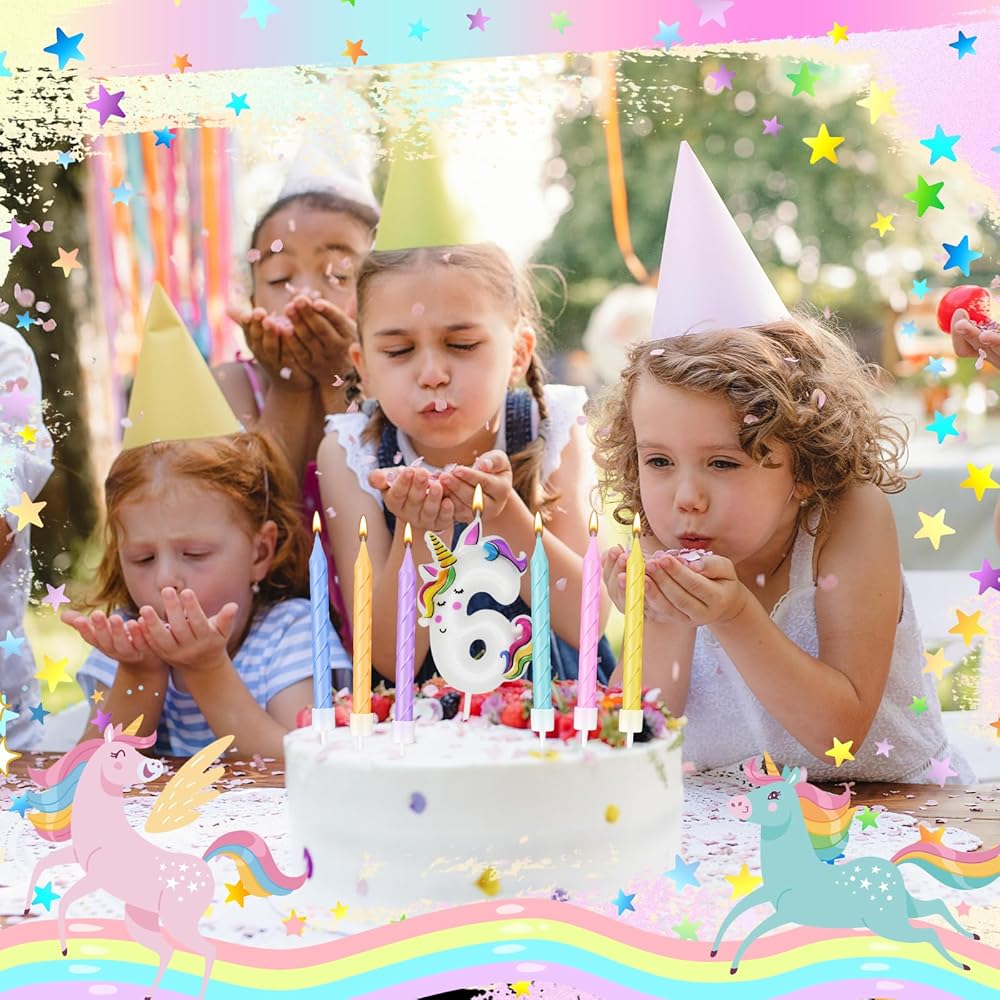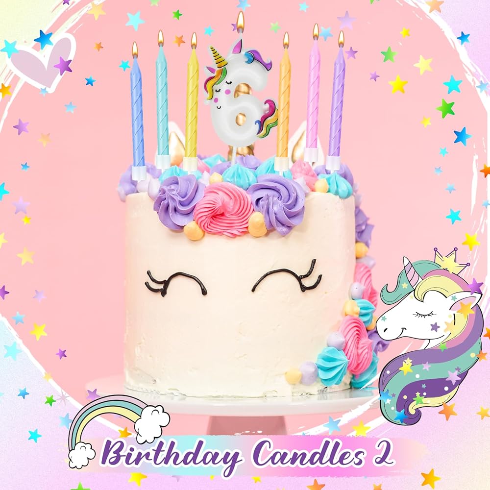 Our unicorn number birthday candles and spiral rainbow candles feature charming macaron colors. Macaron birthday candles come with candle holders, elegant and fashionable appearance, each box of spiral candles has 6 different pastel macaron series colors: light purple, light blue, light green, light yellow, light orange and light pink, these Unicorn cake topper looks beautiful on any cake