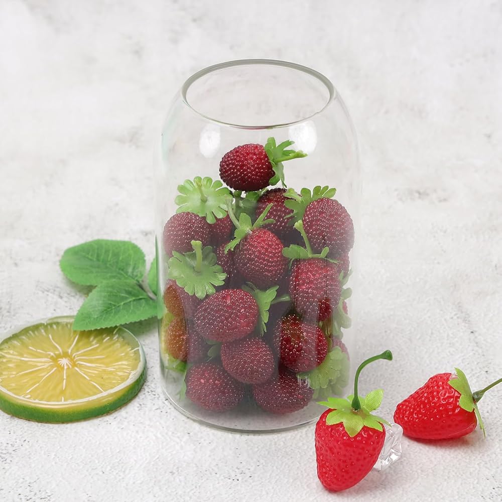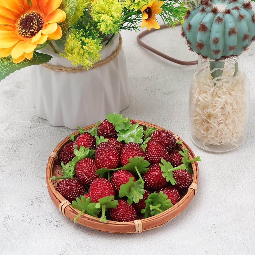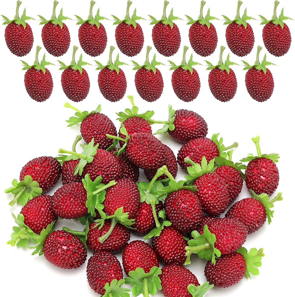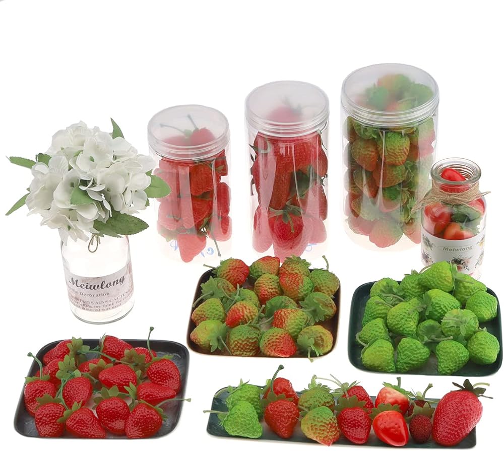 Our artificial strawberries are great for fruit displays, wine decor, home decor, kitchen decor,plastic fake artificial strawberriesare very good game props and can also be used for DIY various hair clip and head rope.