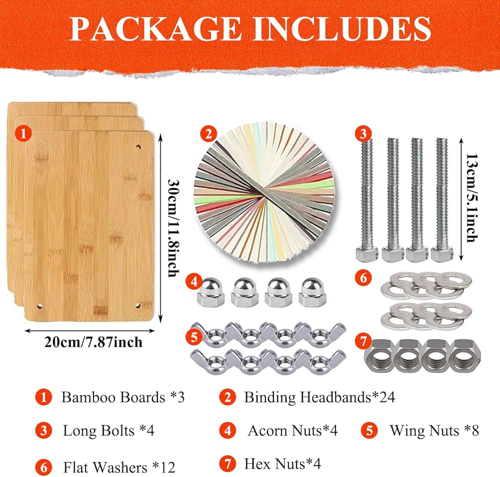 مجموعة تجليد الكتب التي تصنعها بنفسك: مجموعات ربط الكتب لدينا هي مجموعة تجليد الكتب الكاملة التي تتضمن كل ما تحتاجه للبدء. تتضمن 24 قطعة من عصابات رأس ربط الكتب 24 لونًا (30 سم/11.8 بوصة)، وآلة ربط من الخيزران بثلاث طبقات.