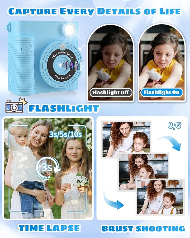 • 【طباعة فورية وسهلة الاستخدام】كاميرا الطباعة الفورية YKSLEMON هي جهاز آمن وسهل الاستخدام للأطفال لالتقاط الصور دون إضافة حبر. مع 3 لفات من الورق الحراري التي يمكنها طباعة ما يقرب من 372 صورة، يمكن للأطفال التقاط العديد من الصور كما يريدون وتجربة متعة الطباعة الفورية!