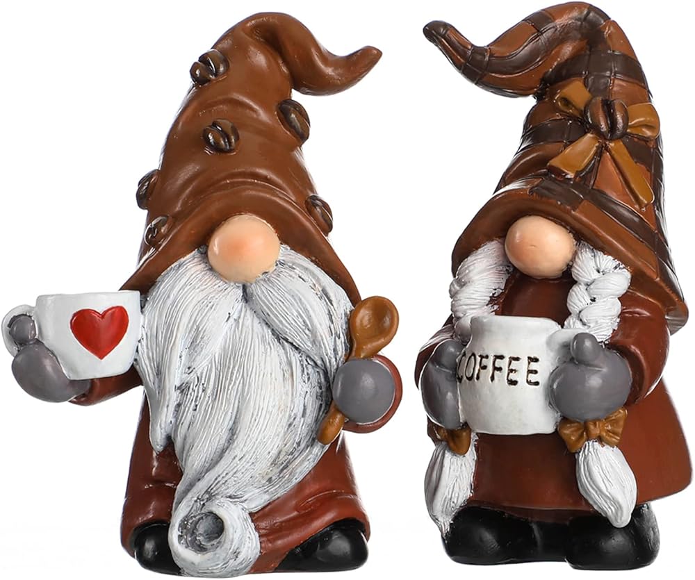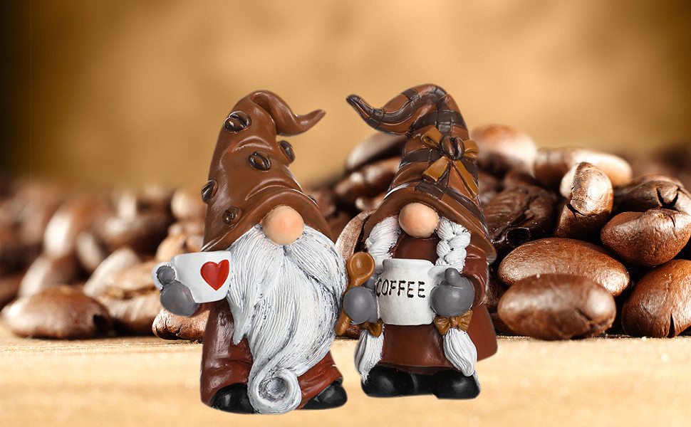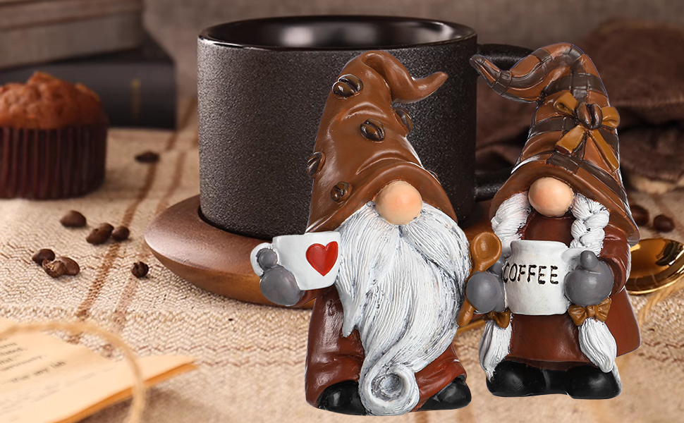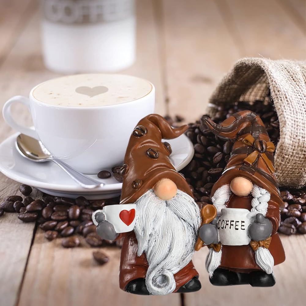 تماثيل قهوة جميلة من الراتنج: تمثالان قهوة قزمان لطيفان يضيفان مشهدًا وديكورات مثيرة للاهتمام إلى منزلك أو مكتبك. مثالية لأواني القهوة والطاولات والمطابخ والأرفف وبيوت المزرعة