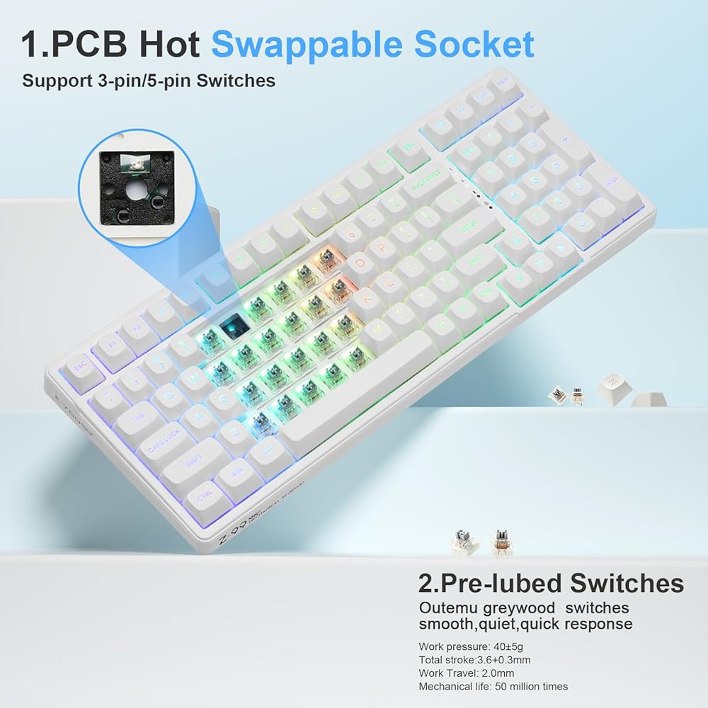 • 【𝗛𝗼𝘁-𝘀𝘄𝗮𝗽𝗽𝗮𝗯𝗹𝗲 𝗖𝘂𝘀𝘁𝗼𝗺 𝗞𝗲𝘆𝗯𝗼𝗮𝗿𝗱】يمكن استبدال المفاتيح وأغطية المفاتيح بحرية (غطاء المفاتيح / تم تضمين ساحبة التبديل في العبوة). تتيح لوحة المفاتيح القابلة للتخصيص المزودة بثنائي الفينيل متعدد الكلور القابل للتبديل السريع للمستخدمين استبدال مفاتيح 3 دبابيس/5 دبابيس بسهولة دون مشكلة لحام. لوحات المفاتيح الميكانيكية Z-99 المجهزة بمفاتيح خطية مشحمة مسبقًا، توفر شعورًا سلسًا بالكتابة وصوت كتابة ممتعًا، وتوفر استجابة سريعة للعبة مثيرة.