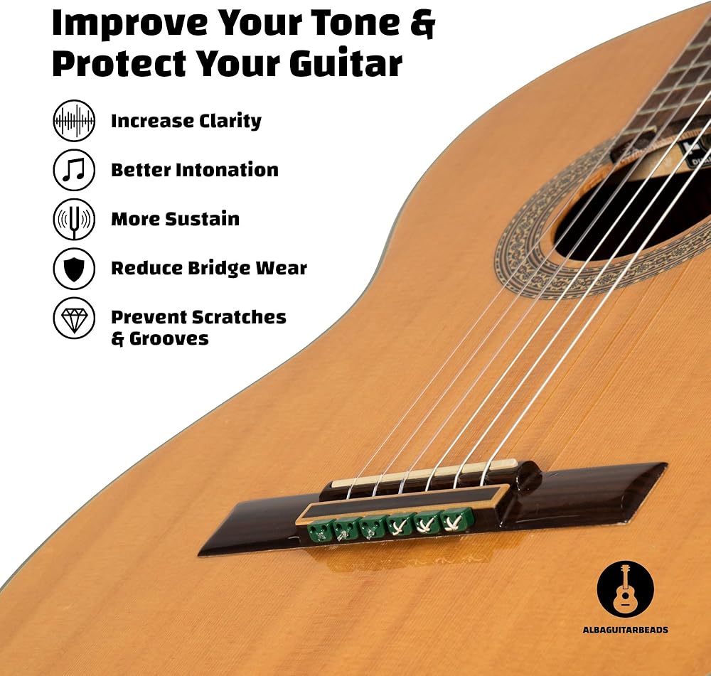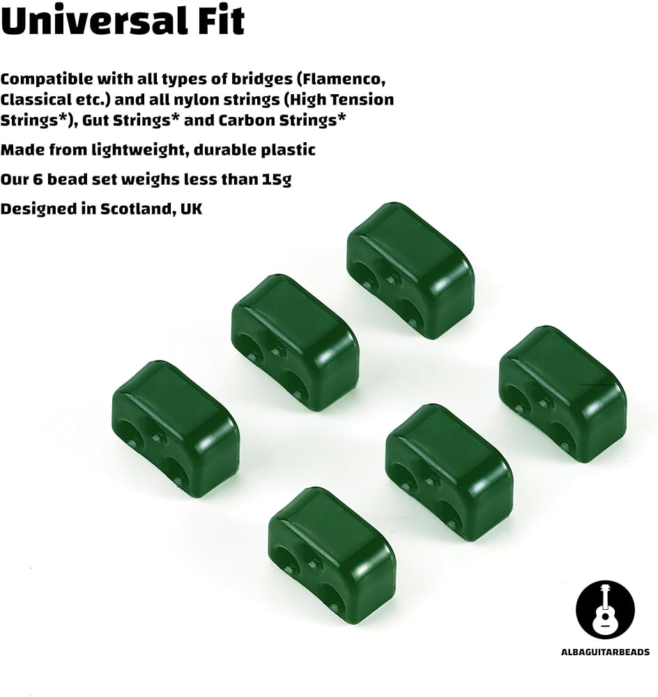 خرز غيتار الفلامنكو الكلاسيكي باللون الأخضر اللامع لأوتار النايلون من خرز غيتار ألبا