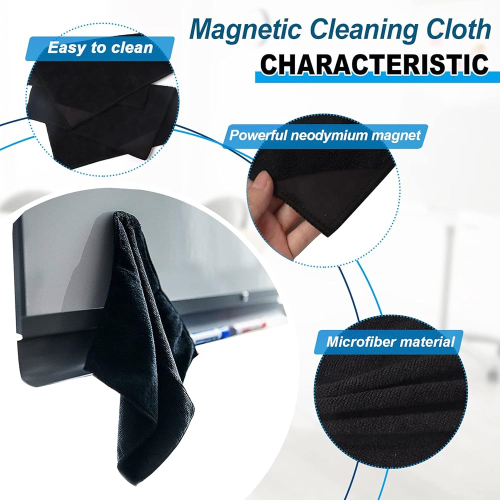 • مغناطيس قوي: يوجد مغناطيس نيوديميوم قوي على كل قطعة قماش جافة للمسح، والتي يمكن تثبيتها بثبات على السبورة البيضاء أو الثلاجة أو أي سطح معدني، مما يوفر المساحة وسهل الاستخدام.