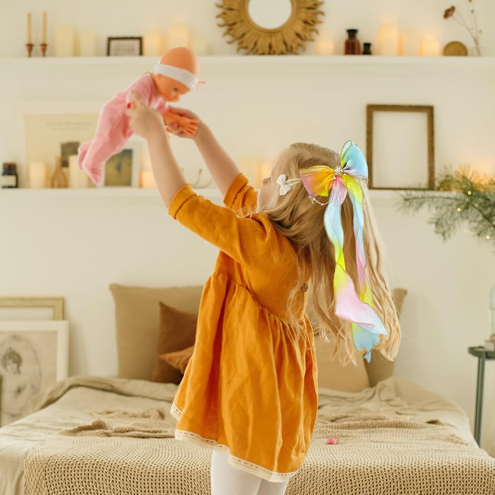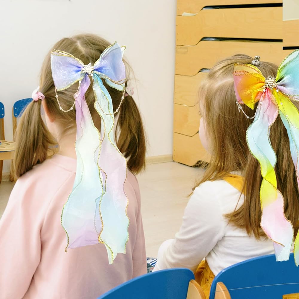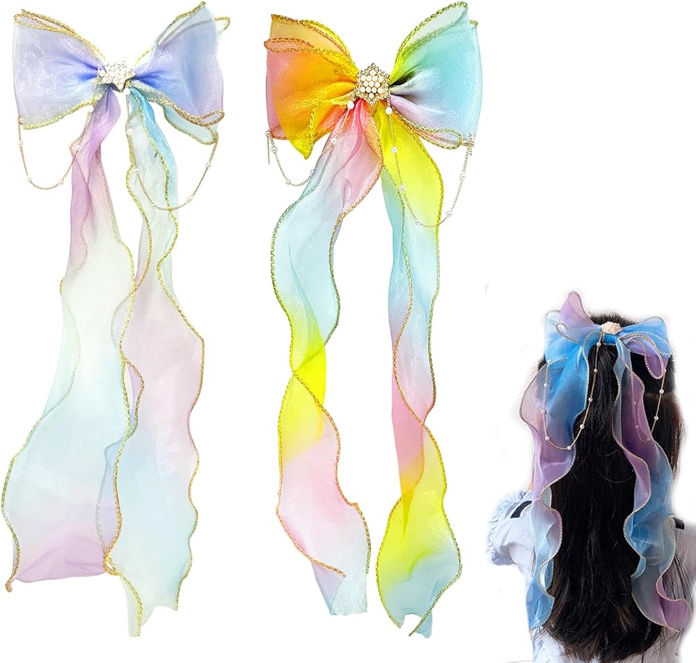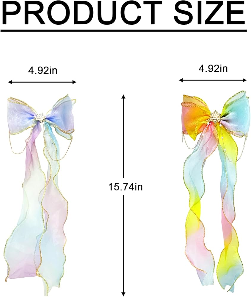 Wide Application:The colorful ribbon hair bows are suitbale for girls daily, school, shows, Coslplay, and holiday dress up, also good for birthday, baby shower, New Year party gift. 2 Pieces Colorful Ribbon Hair Bows for Girls, Rainbow Bows Princess Hair Clips Hair Accessorie