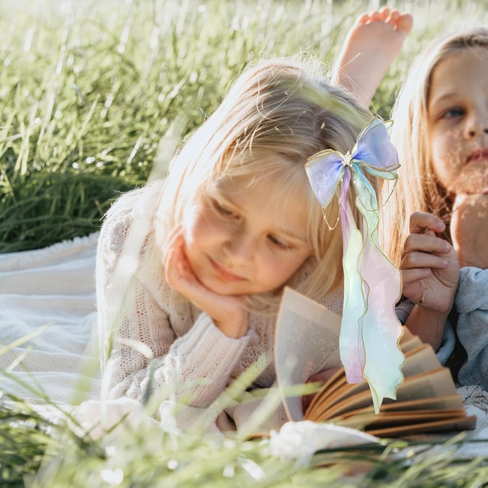 Unique Design:The braided bow design consists of two long ribbons and pearl chains that gradually change color, and very suitable for little princess headdress.