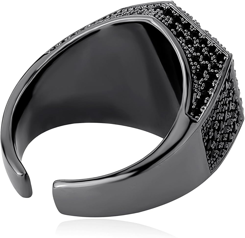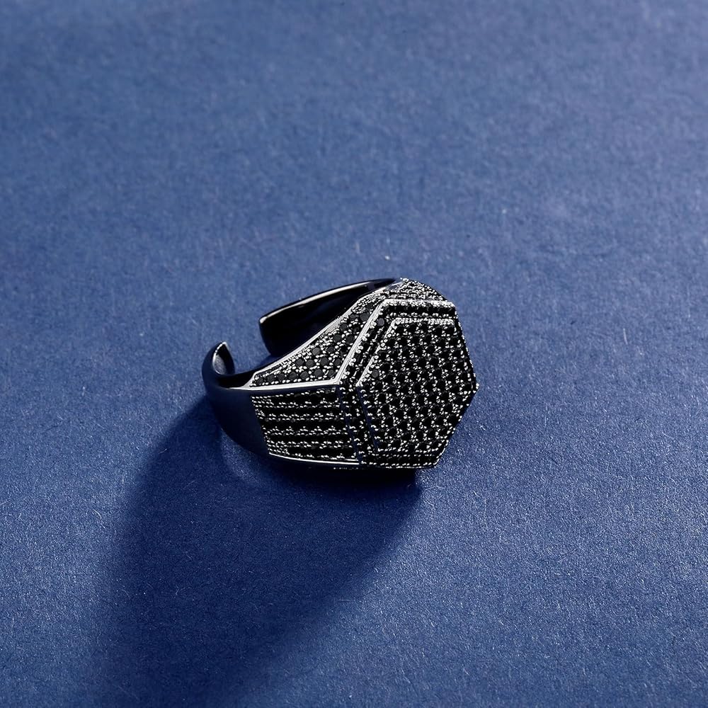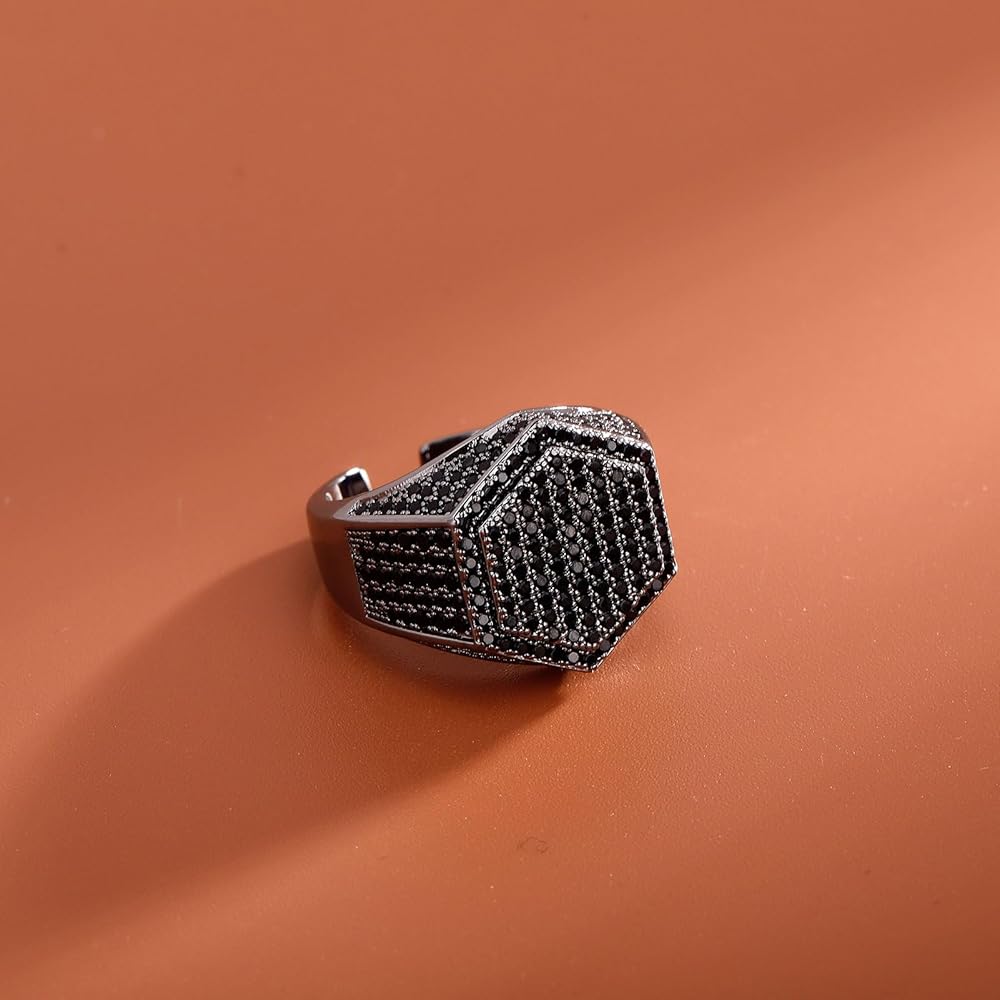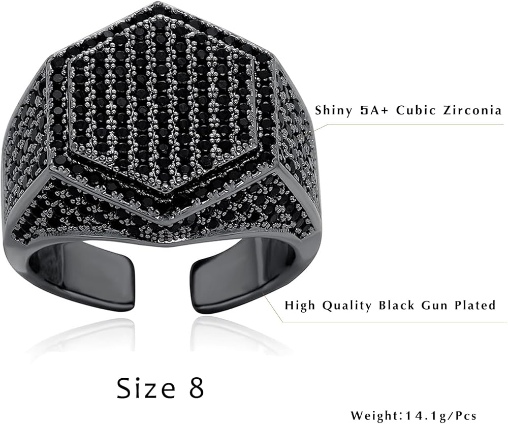 ✜المواصفات: حلقة مفتوحة قابلة للتعديل مقاس الوجه: 19 مم × 19 مم. الوزن: حوالي 8.2 جرام. العبوة: يأتي الخاتم مع صندوق هدايا أسود، أفضل هدية لأصدقائك. يتم وضع كل حجر بعناية يدويًا بواسطة صائغ محترف، مما يخلق مظهرًا مثلجًا تمامًا.