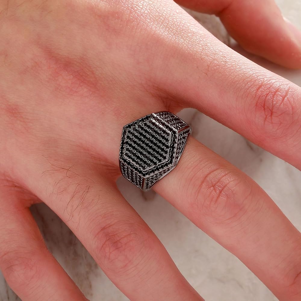 ✜الخامة: مادة الخاتم الرجالي مصنوعة من النحاس الفاخر الذي يختلف عن الحلقات الأرخص من السبائك وألماس الزركونيا المكعب الأسود 5A+ مع صلابة مثالية وسهولة الارتداء، ولا يسبب الحساسية وخالي من الرصاص/النيكل.