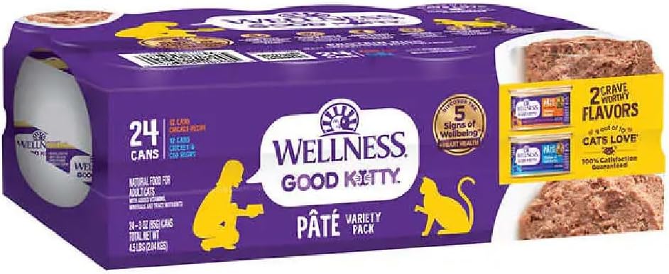 - Wellness Good Kitty Wet Cat Food Pate Variety Pack, 3 oz, 24-count