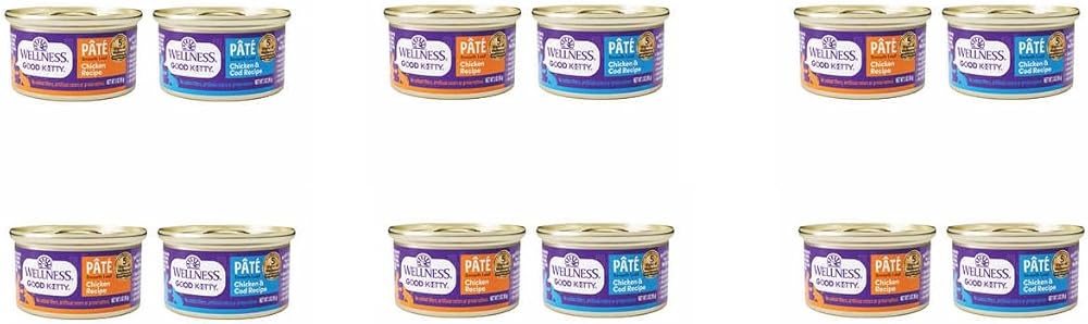 Wellness Good Kitty Cat Food Canned Variety Pack Pate 12 Cans Chicken Recipe, 12 Cans Chicken & Cod Recipe (24 Cans)