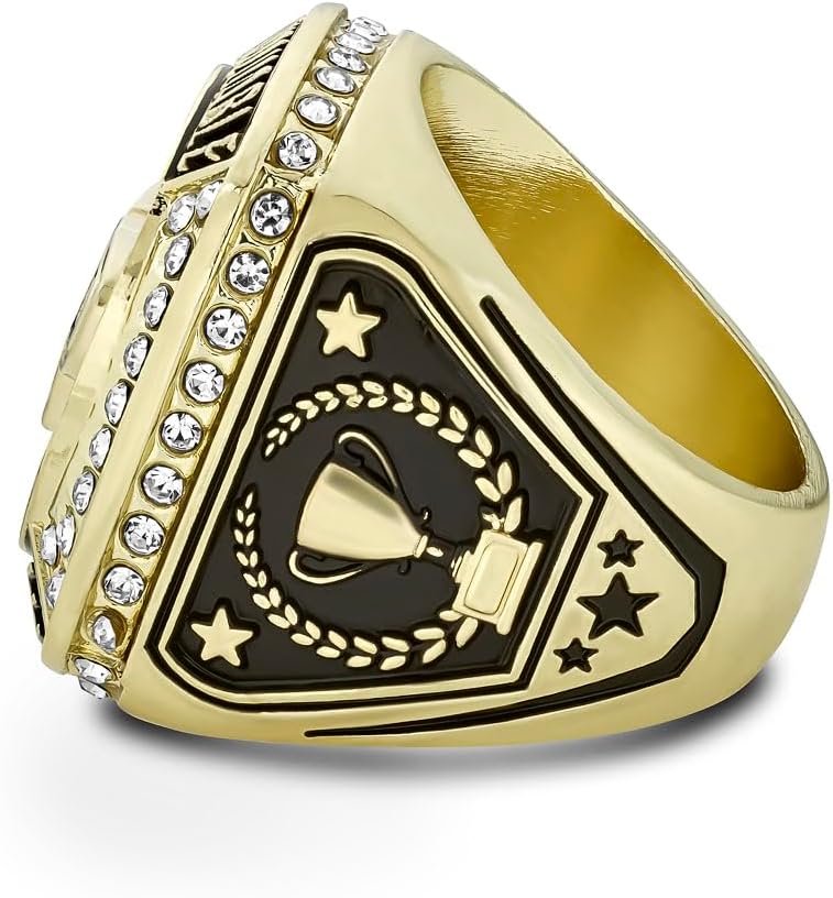 الجودة: استمتع بلمسة نهائية ذهبية لامعة جميلة على حلقات بطولة الزنك المصبوبة. هذه جائزة ستفخر بتقديمها. 3 طرق لعرض الكأس الدائري، يمكن ارتداؤها على الإصبع، أو على سلسلة الرقبة، أو على علبة الحامل.