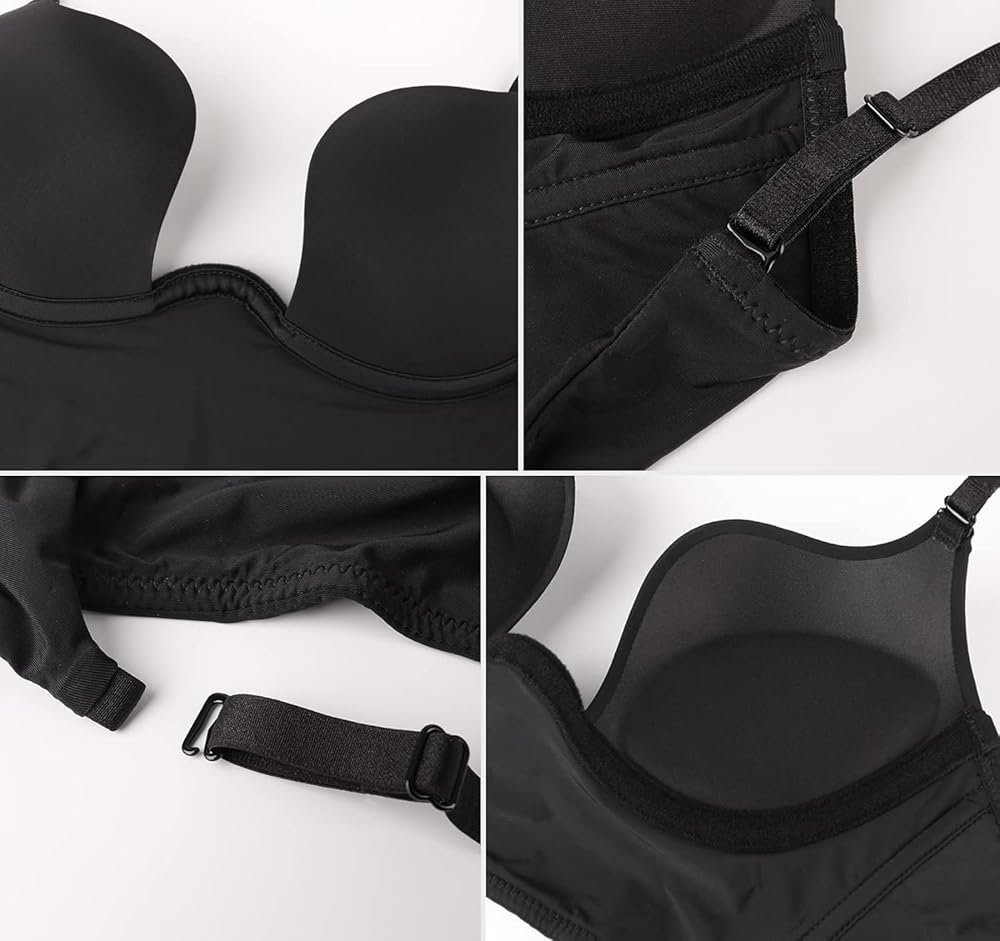 • DEEP PLUNGE: The Deep U stype speaks for itself, Deep plunge give extra lift and create cleavage. In order to let every lady wear low cut dress, plunging top without embarrassment of leaking underwear, we design this deep u plunge brassiere
