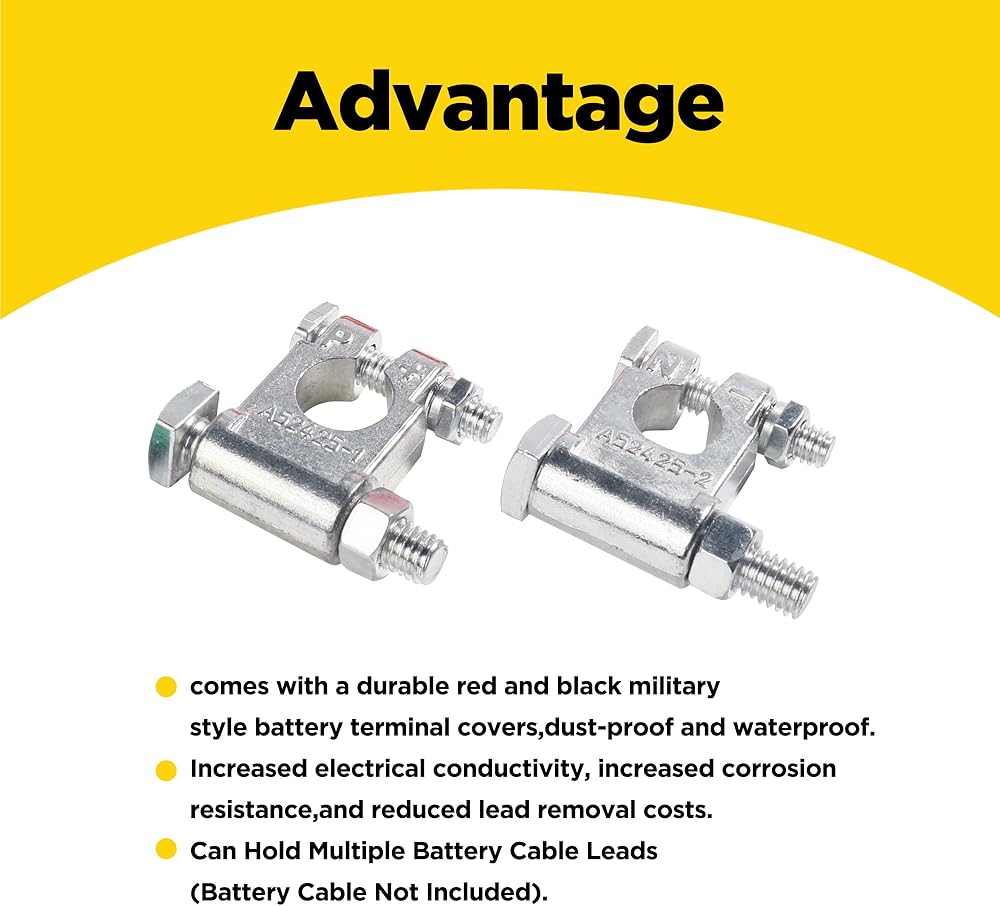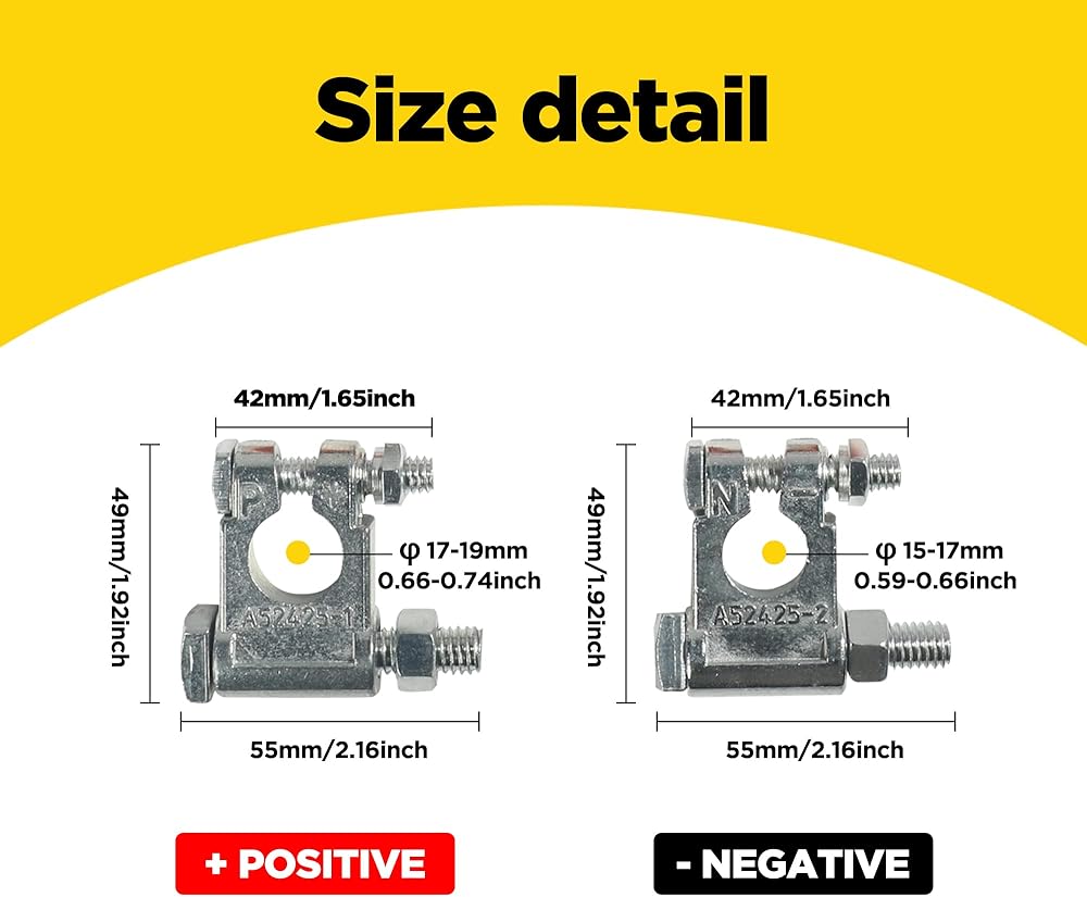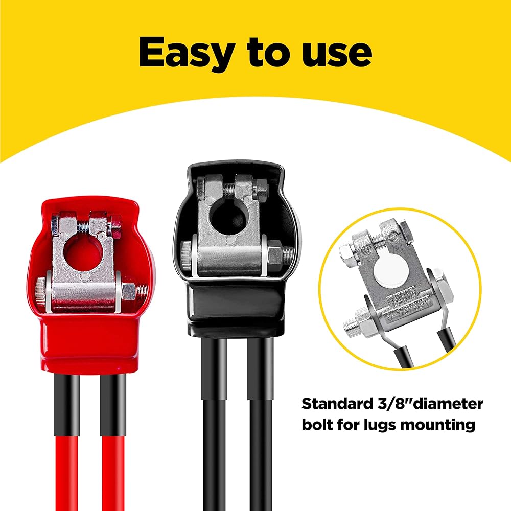 [Easy to Install]. Each terminal can accommodate multiple battery cable leads (excluding battery cable). The 2 # 3/8 "copper lug is only applicable to the 2 # wire. Before installing the car battery terminal, please check the positive and negative terminals.