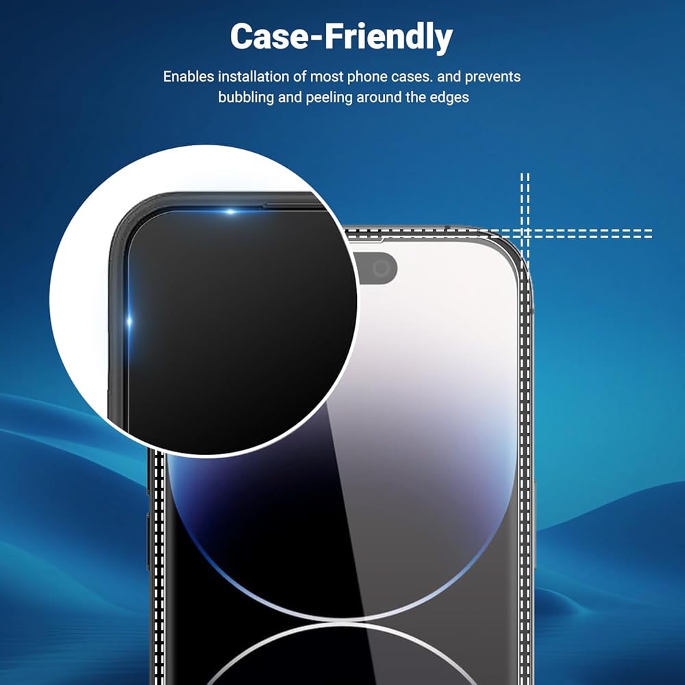 • متوافق مع Face ID: تم تصميمه بدقة لهاتف iPhone 14 Pro 6.1 بوصة، ولا يتداخل واقي الشاشة هذا مع ميزة Face ID.