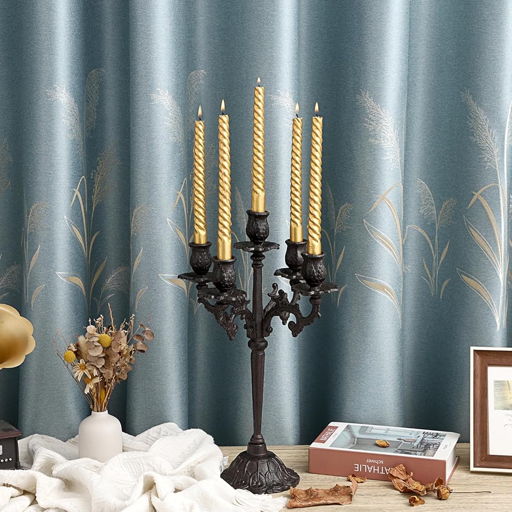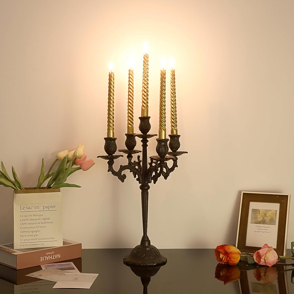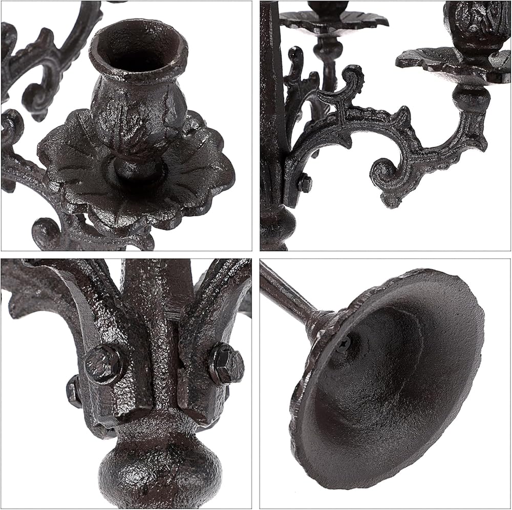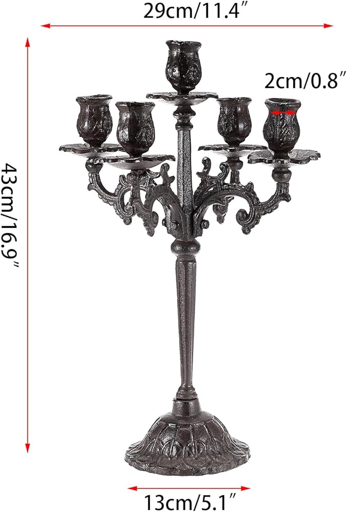 حامل شمعدان من الحديد الزهر بخمسة أذرع، حامل شموع مستدقة عتيقة، شمعدانات كبيرة شديدة التحمل، شمعدان من الحديد الزهر بخمسة أذرع، حامل شموع مستدقة عتيقة، قطع مركزية أنيقة للشموع لطاولة الطعام