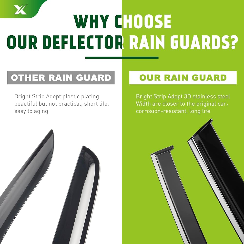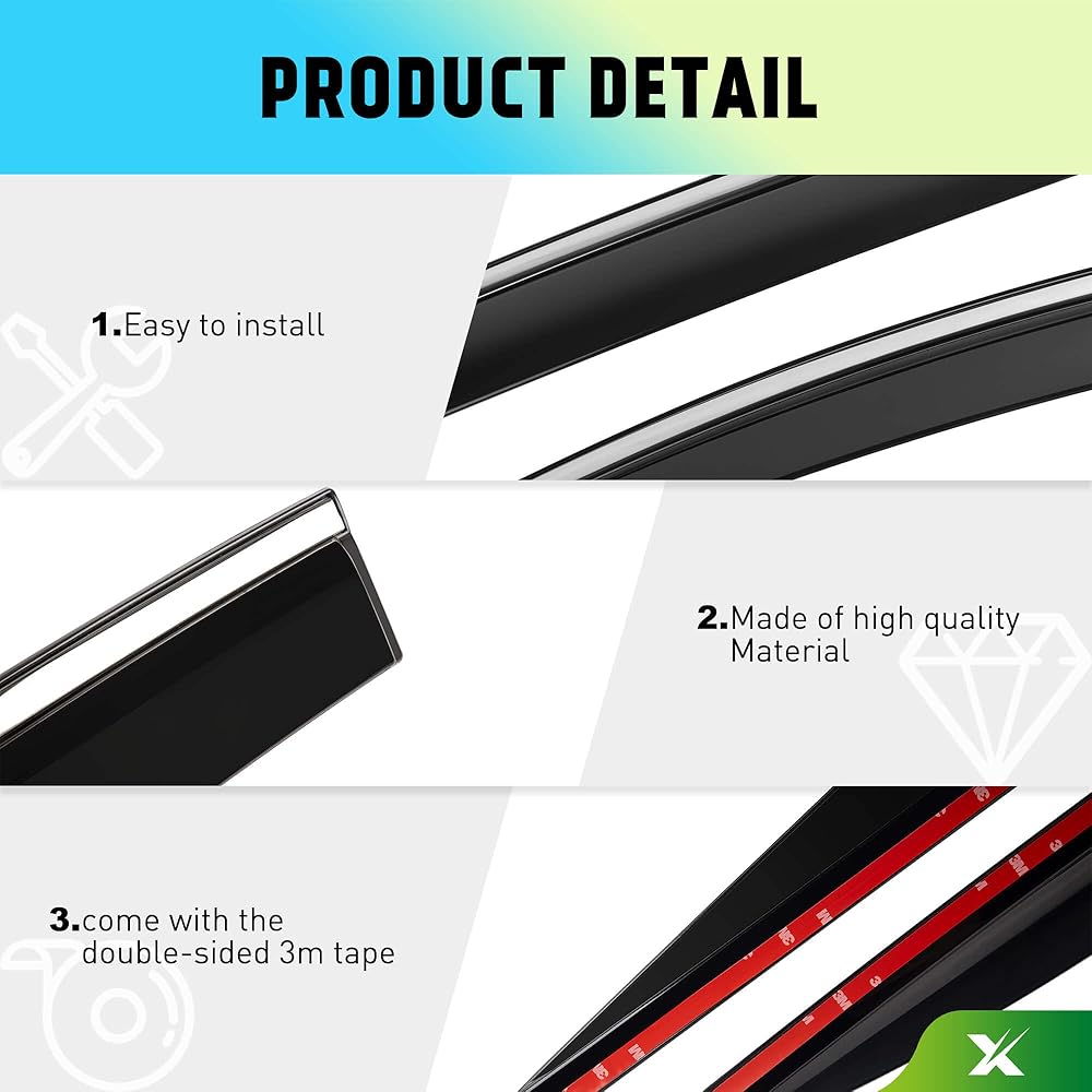 [سهل التركيب] - لا يتطلب أي ثقب، تأتي واقيات مطر النوافذ الخاصة بنا مثبتة مسبقًا بشريط من فئة السيارات 3M على إطار النافذة، مما يسمح بالتركيب السريع وتوفير الوقت. هذا هو نوع الشريط، وليس داخل القناة النوع، يرجى التأكد مما إذا كان هذا هو ما تحتاجه قبل شراء هذا المنتج.