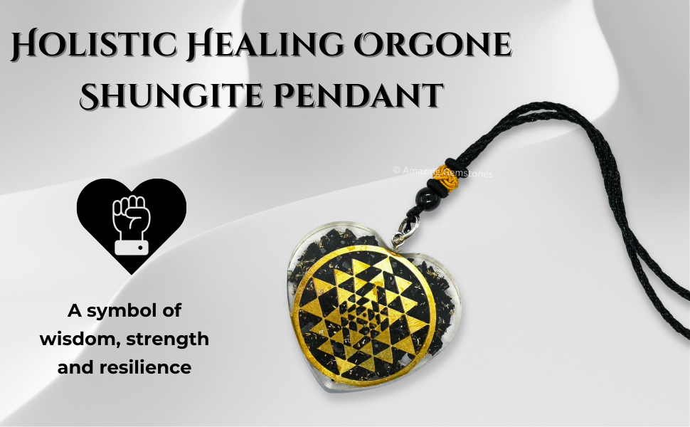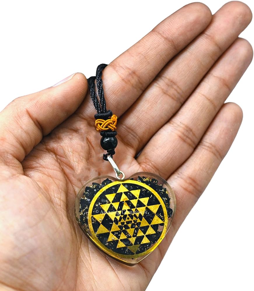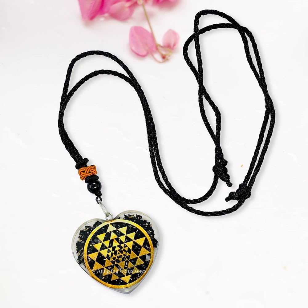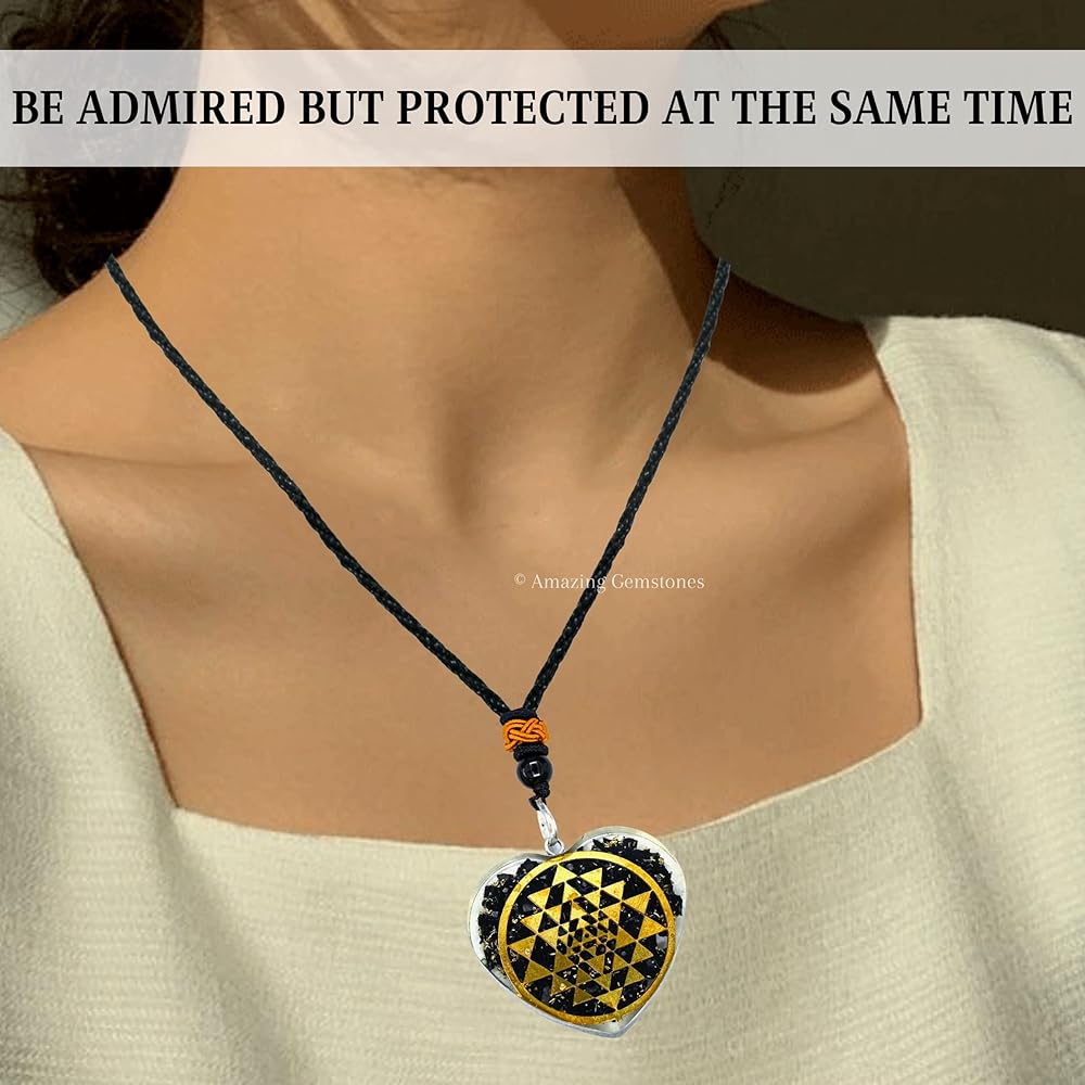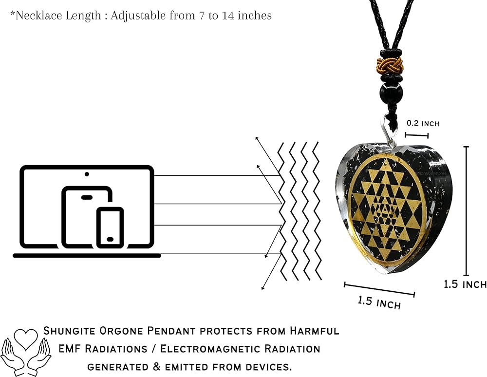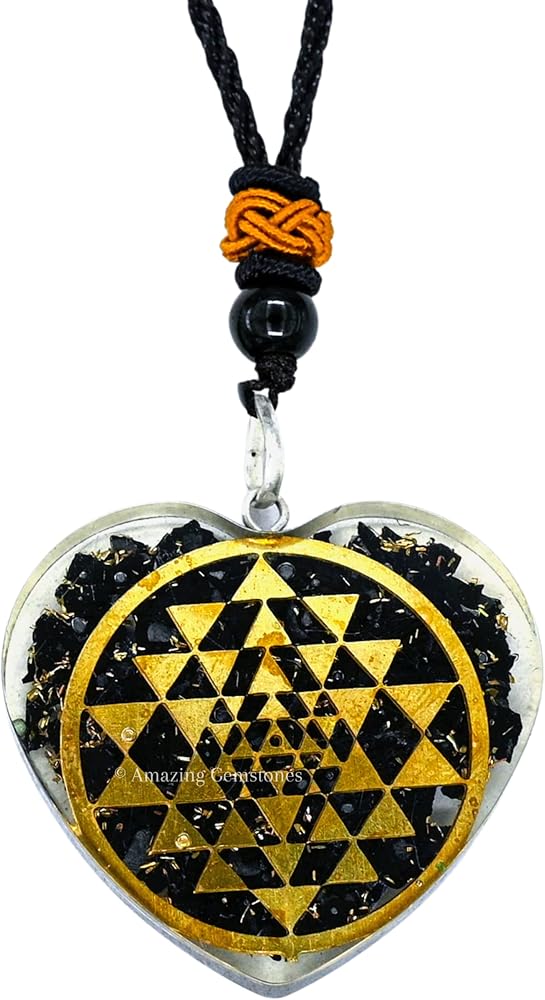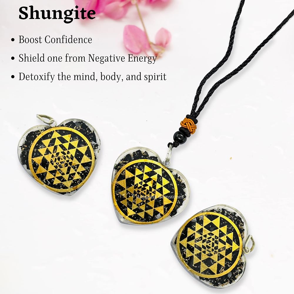 قلادة رائعة من الأحجار الكريمة على شكل قلب شونغايت أورجونيت للحماية - قلادة أورجون قوية للرجال والنساء والأطفال (سري يانترا)