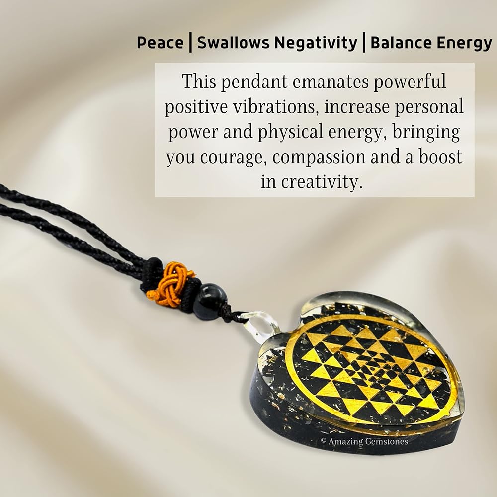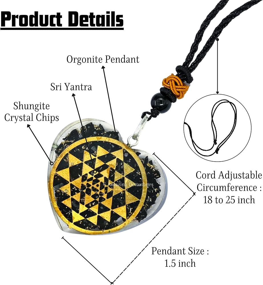 • تُعد قلادة Shungite Orgonite المتدلية مع رمز Sri Yantra واحدة من أفضل أجهزة الحماية الشخصية التي يمكنك ارتداؤها يوميًا في روتينك. إن قلادة الشونغايت الخاصة بنا مناسبة لكل من الرجال والنساء.