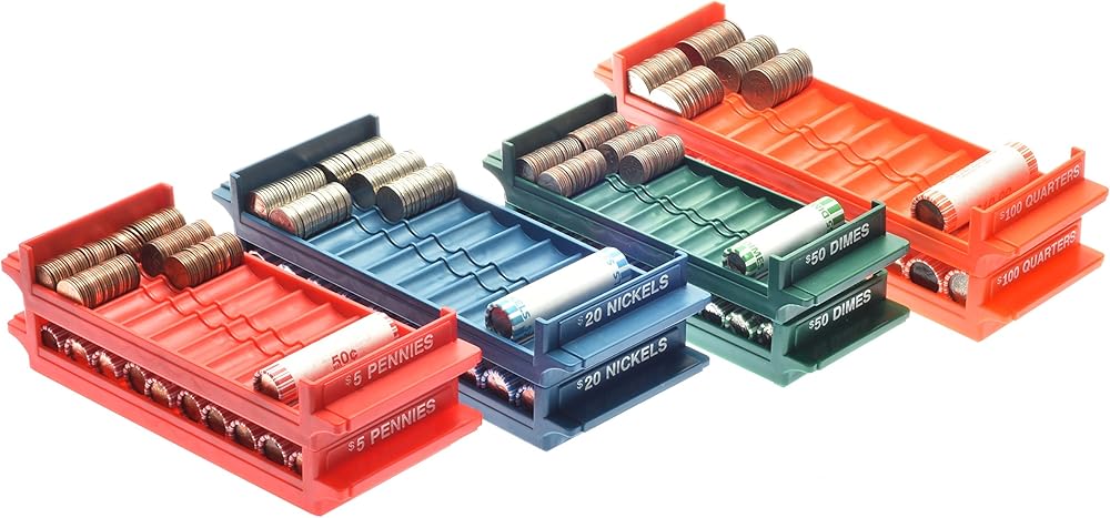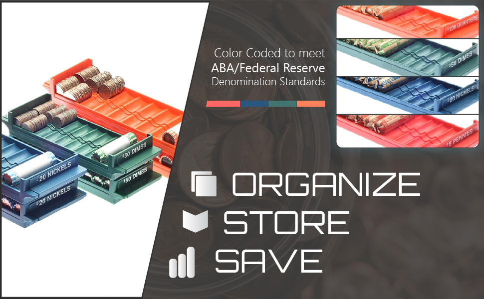 📈 مجموعة صواني التخزين: لقد قمنا بتنفيذ نتوءات في مكانها لحمل العملات المعدنية السائبة أو يمكنك ملء الصواني بالعملات المعدنية الملفوفة