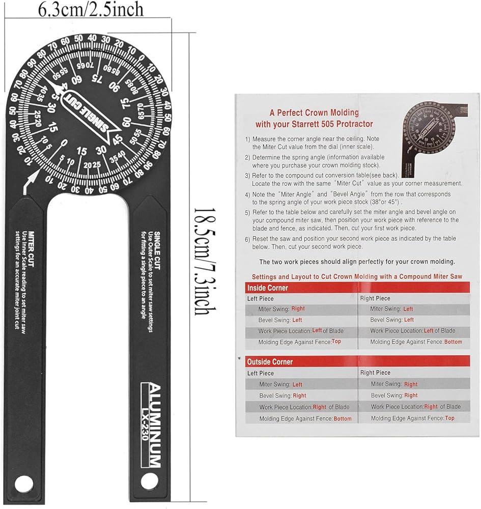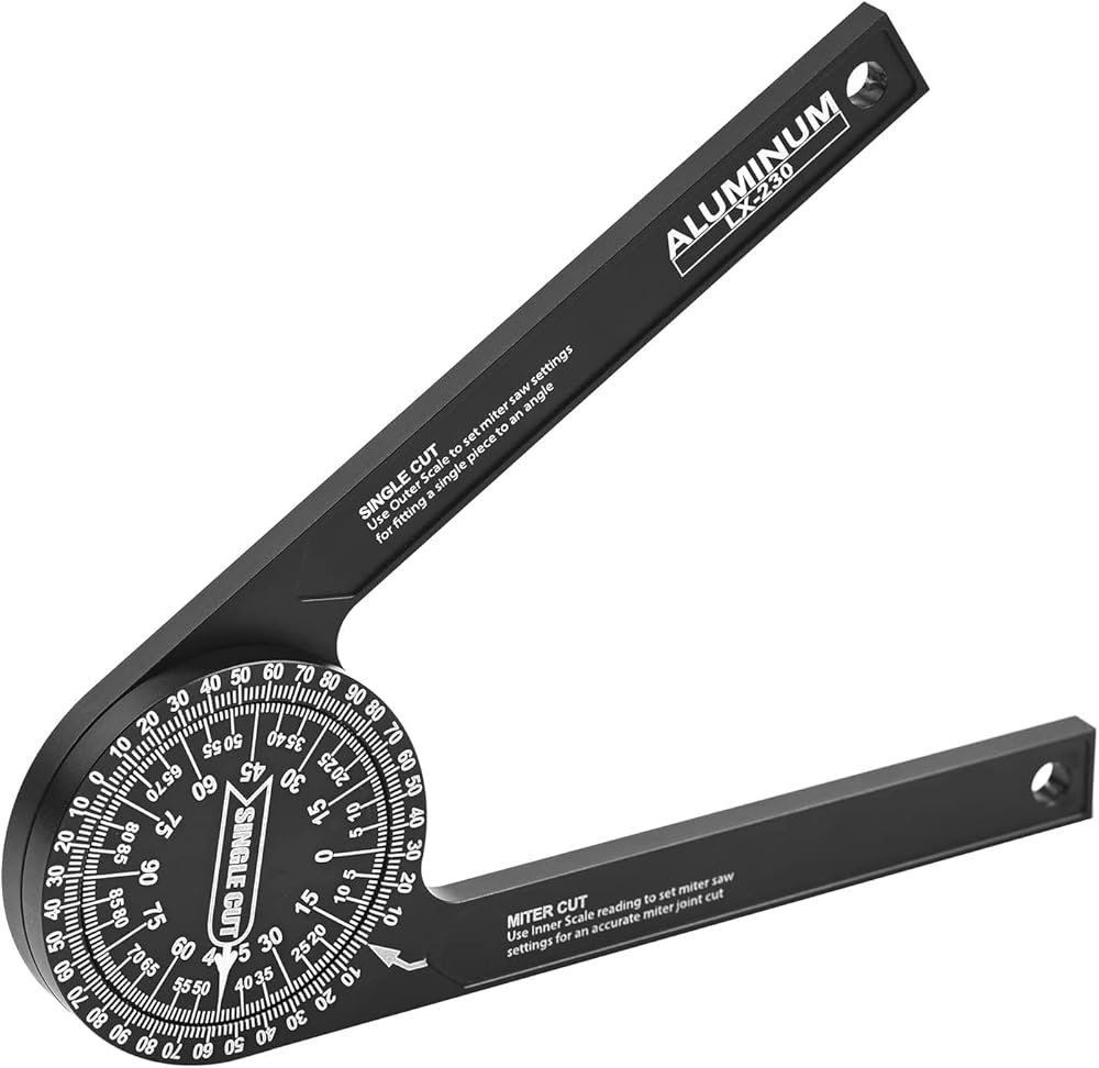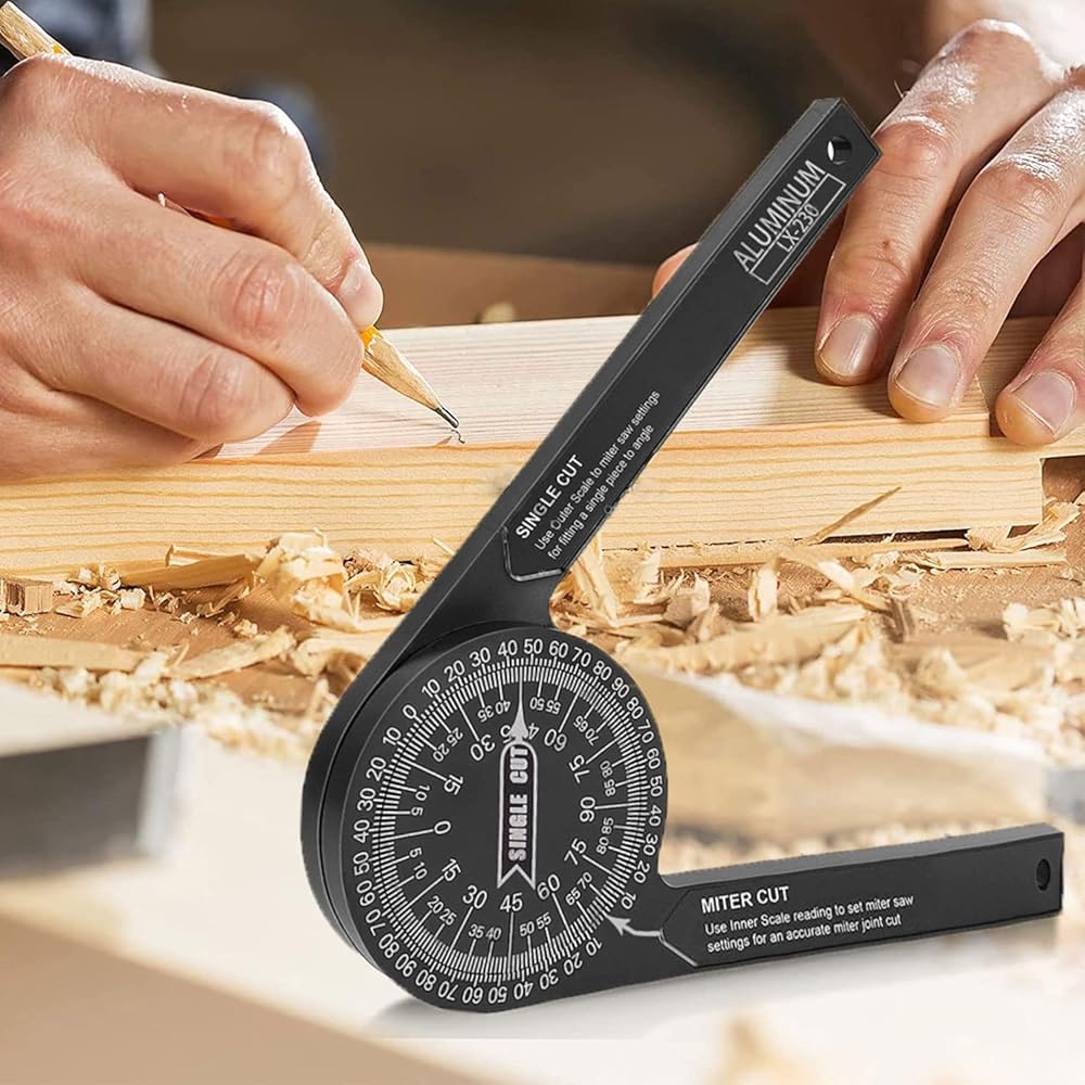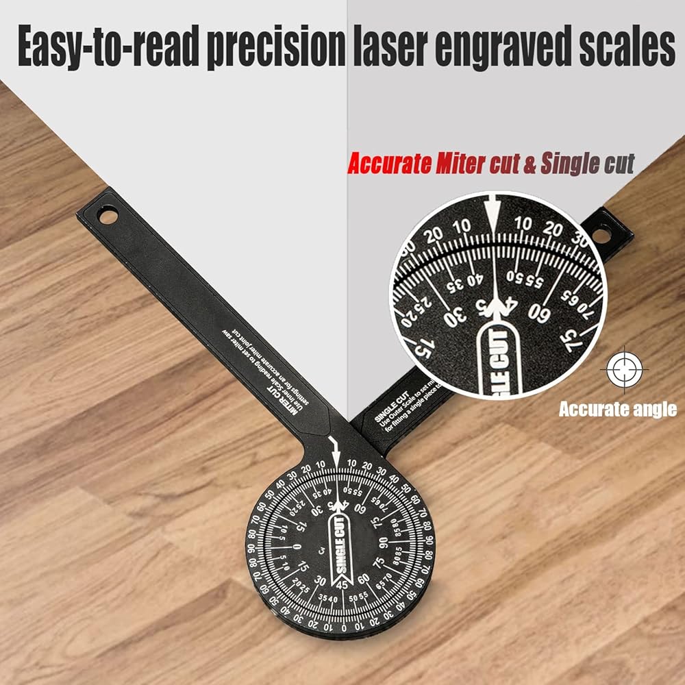 👍Accurate measurement-Crafted from CNC-machined Anodized Aluminum Alloy. Features easy-to-read precision engraved scales.Two scales transfer your work angle directly to the miter saw for an accurate Miter cut, and Single cut.