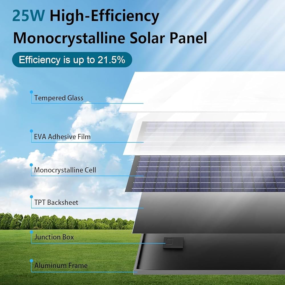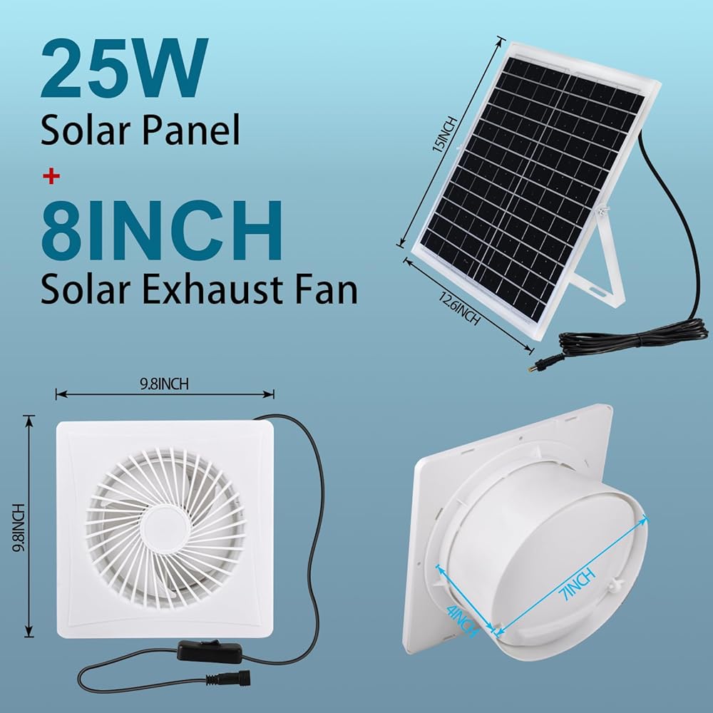 【قل وداعًا للعمل تحت أشعة الشمس فقط】مروحتنا الشمسية ذات اللون الرمادي مقاس 8 بوصات مجهزة بلوحة شمسية عالية الكفاءة بقدرة 25 وات مع دعامات قابلة للتعديل، ومحول طاقة بحيث لا يمكن استخدام المروحة التي تعمل بالطاقة الشمسية في الأيام المشمسة فحسب، بل أيضًا في الأيام الغائمة، الأيام الممطرة، حتى في الليل. تأتي اللوحة الشمسية أيضًا بسلك طاقة بطول 13 قدمًا بحيث يمكن وضعها على السطح بسهولة.