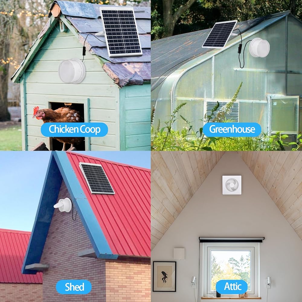 【استخدام واسع】يمكن استخدام المروحة الشمسية لتدوير الدفيئة في مناسبات مختلفة، كما أن المروحة الشمسية هي حل مثالي للتهوية للدفيئة والسقيفة وأقفاص الدجاج والجراجات والحدائق الصغيرة والسندرات والحظائر والأقبية والمركبات الترفيهية وعادم النوافذ والخارج. التخييم ومجموعة متنوعة من المواقع الأخرى حيث تحتاج إلى مروحة الطاقة الشمسية لنقل تدفق الهواء الفائق للتبريد والتهوية.