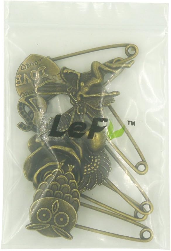 This set of 6 LEFV bronze alloy hijab pins is the perfect addition to your wardrobe. The set includes the 6 different designs similar to those pictured on this page, although designs vary in each set. The pins vary in length, approximately 1-2 inches long. These popular new style of pins have the utility of a traditional hijab safety pin, with an updated new look. They can be used in a variety of ways on your hijab. Note: These pins are larger and thicker than the traditional hijab pin. This allows you to gather more material in them for new looks. It also means that these pins should therefore only be used on hijabs or cloths made from sturdy fabric and/or with a loose weave.