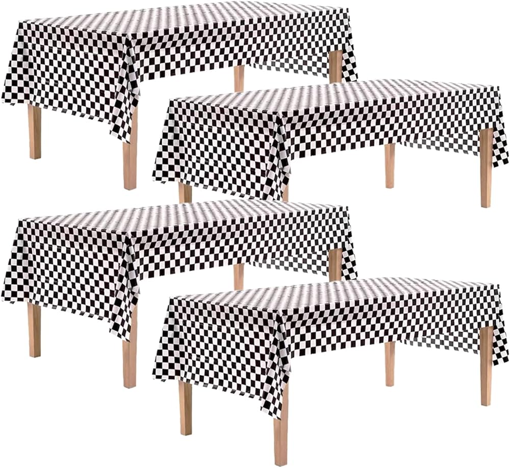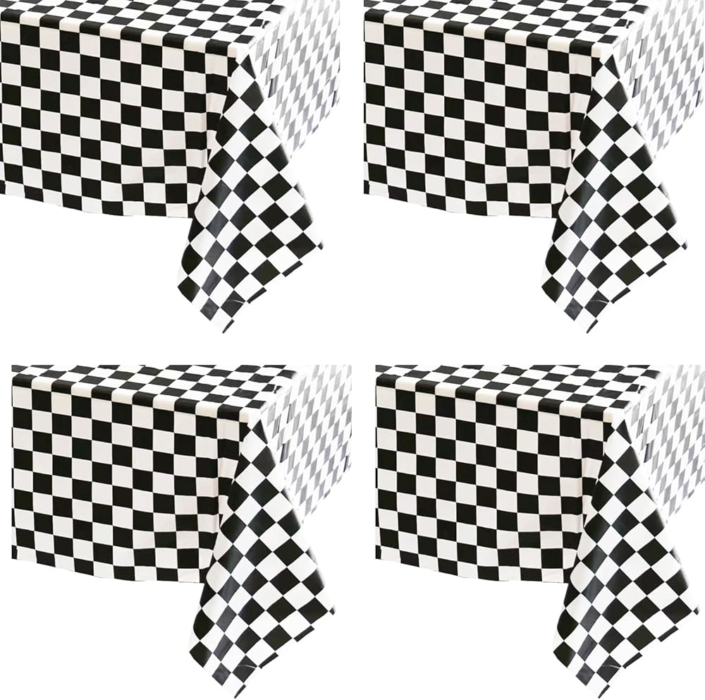 4 قطع غطاء طاولة بلاستيكي لمستلزمات حفلات علم السباق - الرياضة/السباق/الدراجة الترابية/ديكورات حفلات أعياد الميلاد ومستلزمات حفلات استقبال المولود الجديد (53.9 × 72 بوصة)