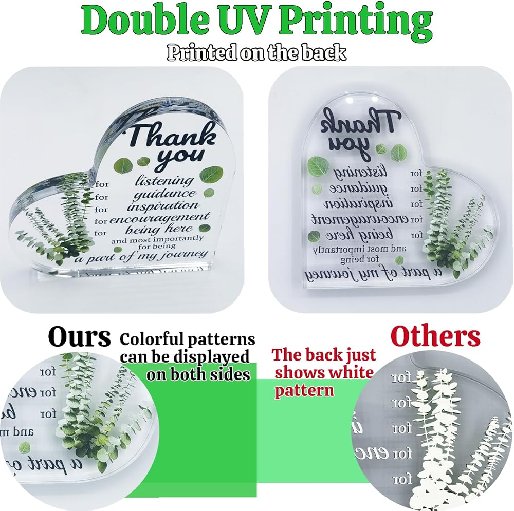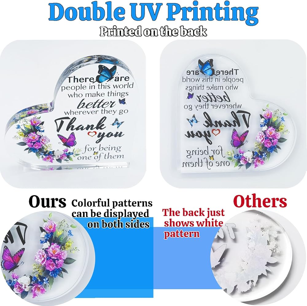 ❤أنماط جميلة: تستخدم كلمات وصور التقدير تقنية الطباعة بالأشعة فوق البنفسجية المزدوجة، المطبوعة على الجزء الخلفي من الأكريليك، سواء من الأمام أو العكس، يمكن أن تظهر نفس اللون بوضوح وحيوية. وهذا يجعله خيارًا مثاليًا لمختلف المناسبات مثل الكريسماس والذكرى السنوية وحفلات الوداع وأعياد الميلاد والتخرج وعيد الأم وعيد الشكر والمزيد.